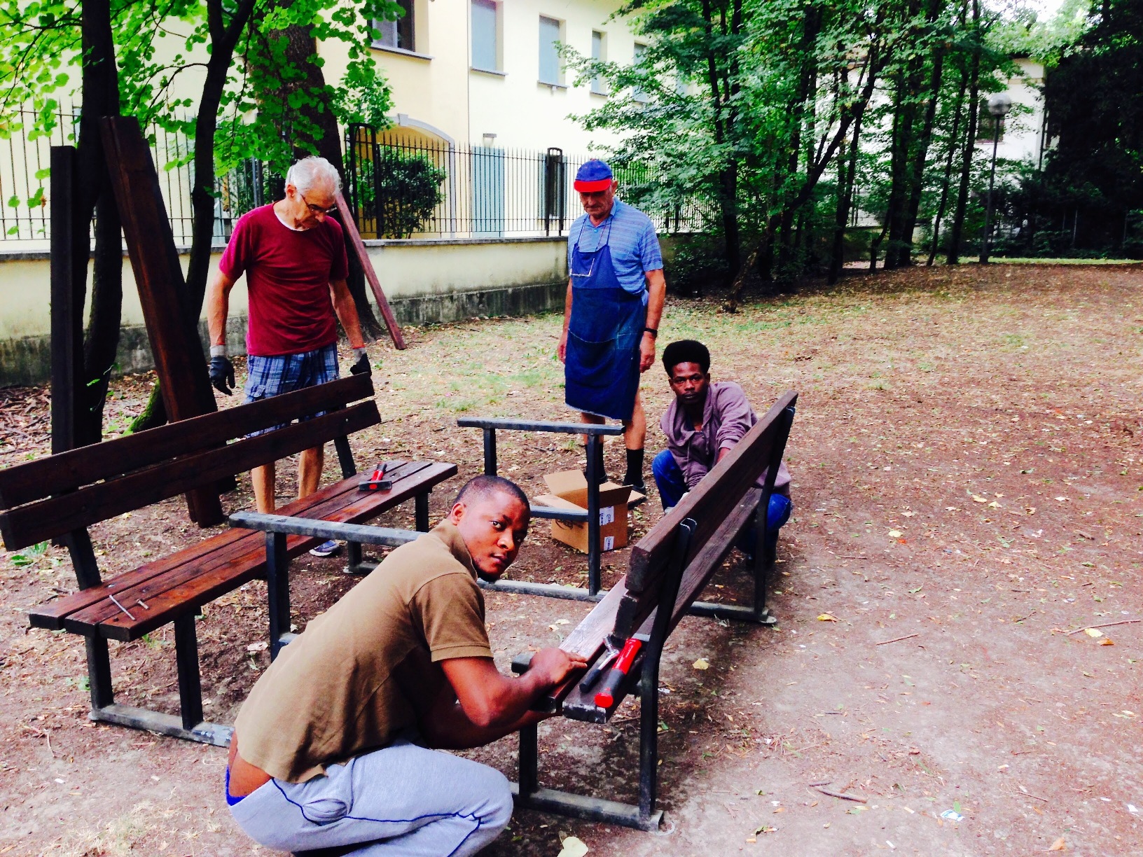 Oltre ai sette ragazzi africani, hanno partecipato anche i ragazzi della Comunità La corte del Ceis. La consegna ai cittadini delle panchine rimesse a nuovo è in programma per il 3 ottobre.