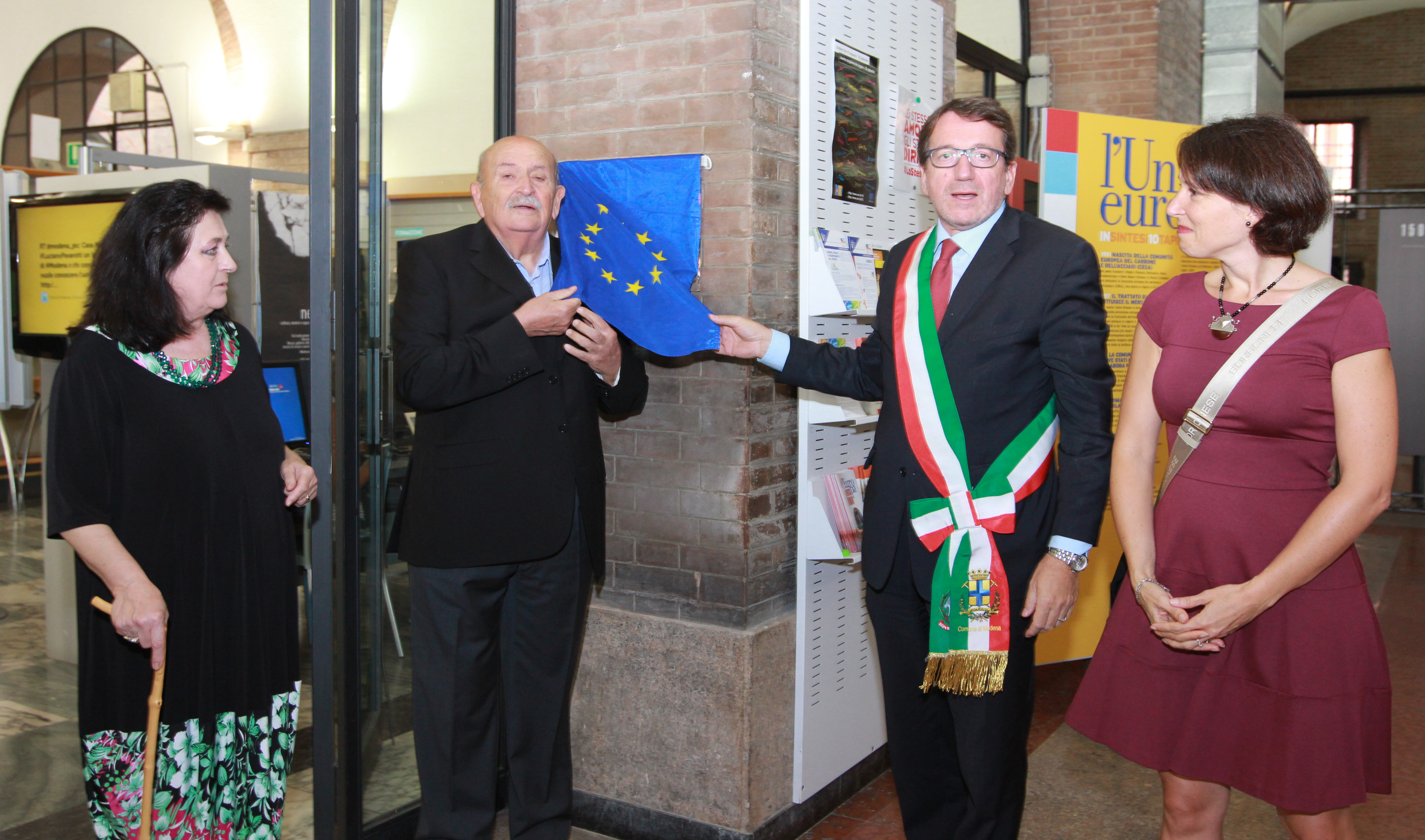 “Essere europei non perché le nostre radici vengano estirpate – continua l’iscrizione collocata nel portico tra la Galleria Europa Renzo Imbeni e gli spazi dell’Urp - ma perché solo uno spazio più ampio, quello europeo, permette a queste radici di produrre ricchezze culturali e sociali a disposizione di tutti. Fiducia nel futuro, dunque”. Uno stimolo e un incoraggiamento che molto probabilmente Renzo Imbeni rimarcò in questo stesso luogo anche quando, il 10 maggio 1997, inaugurò l'Info point Europa. Da allora lo spazio di circa 400 metri quadrati che dal piano terra del Municipio di Modena si affaccia su piazza Grande è sede delle principali attività di divulgazione, informazione e sensibilizzazione sui temi europei. In particolare accoglie il Centro Europe Direct Modena, Centro di informazione ufficiale della Commissione europea, nonché servizio di informazione sulle attività e le opportunità dell’Unione europea aperto a tutti i cittadini.