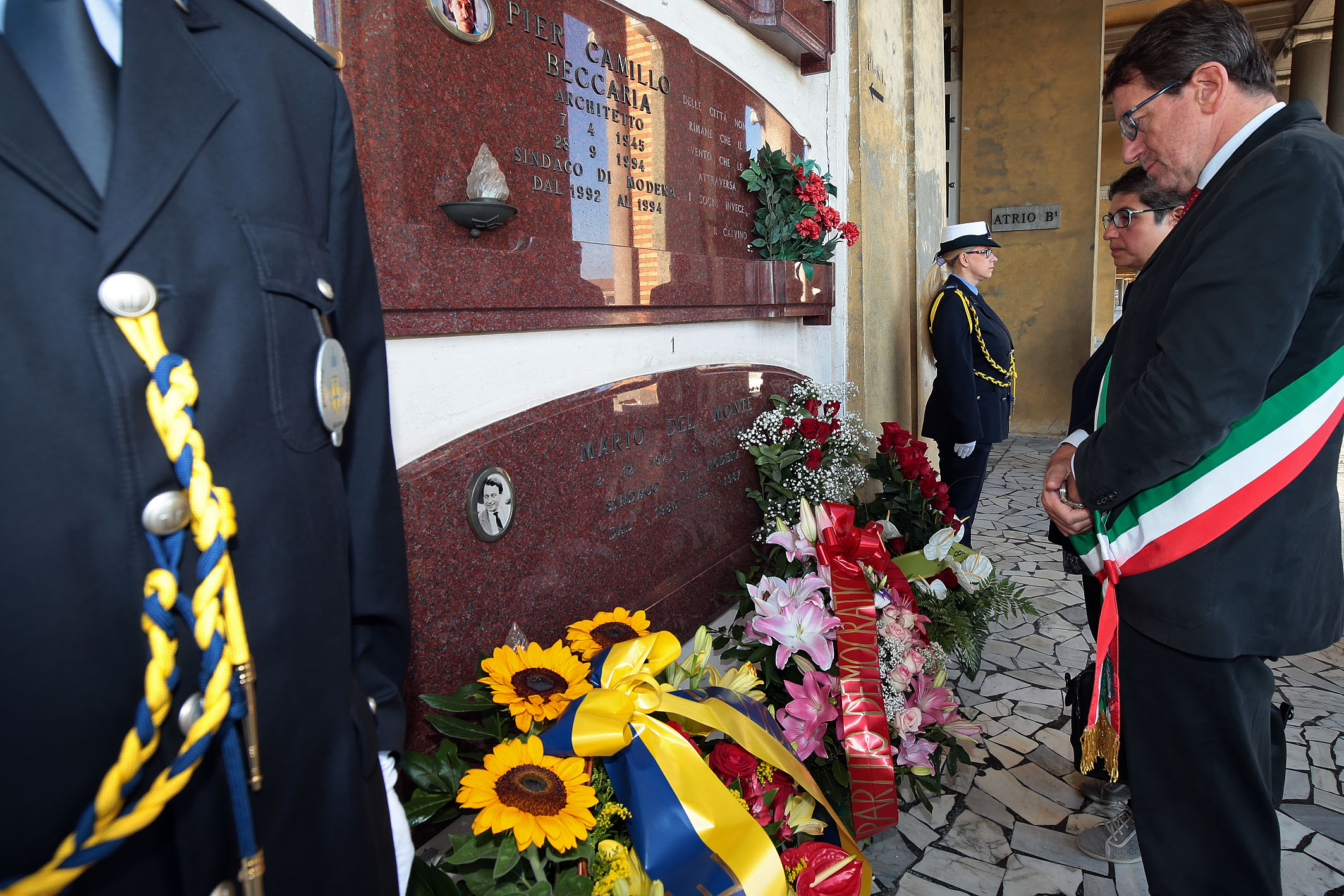 La delegazione ha deposto una cesta di fiori con nastro giallo e blu davanti alla tomba di Del Monte che fu sindaco di Modena dal 1980 al 1987. Del Monte fu anche dirigente del Pci, assessore alla Regione Emilia Romagna e presidente provinciale della Lega delle cooperative.