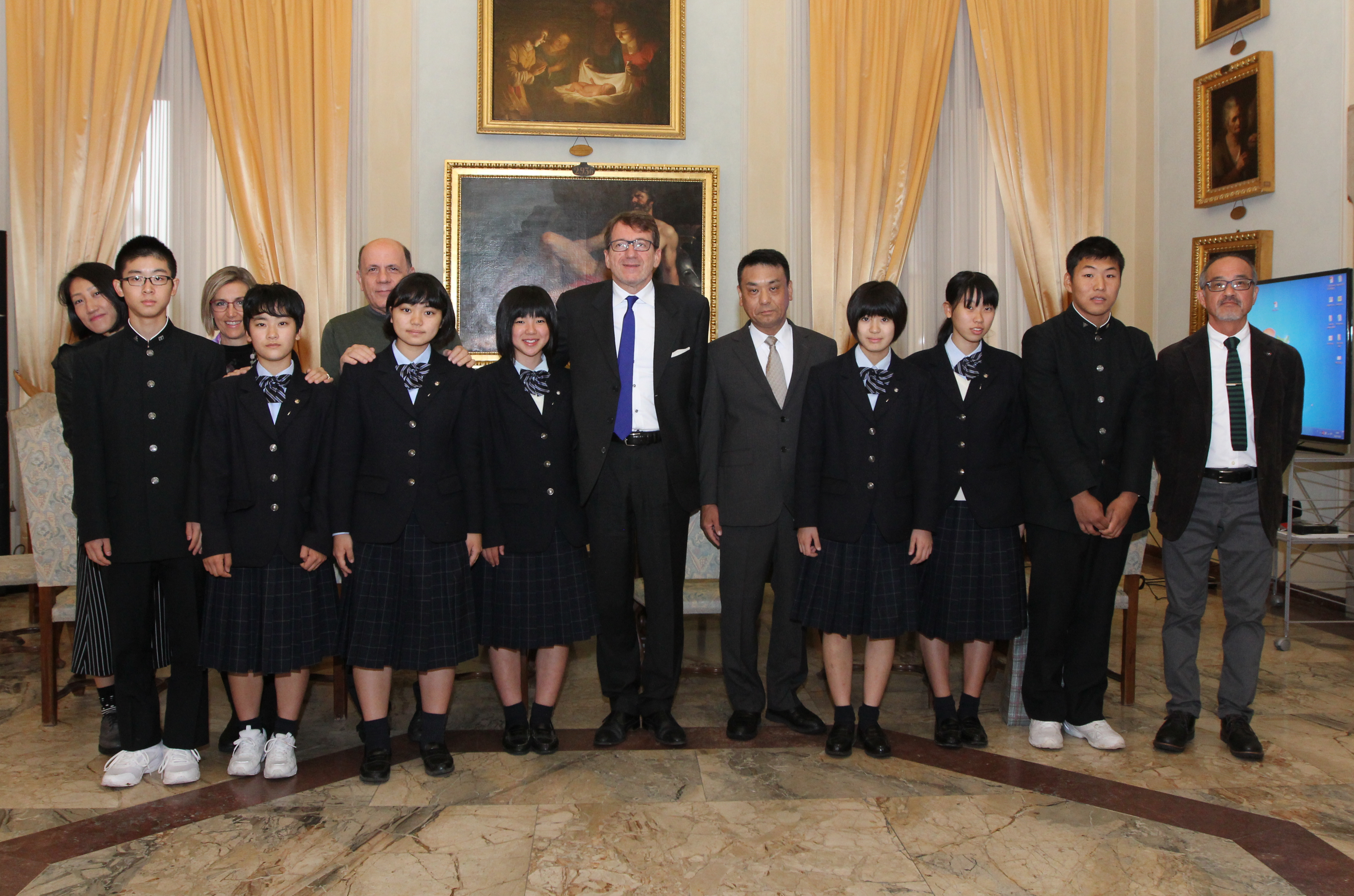 Dal Giappone a Modena per conoscere meglio “l’agricoltura di qualità”, lavorare in un caseificio alla preparazione del Parmigiano Reggiano e imparare le tecniche di potatura della vite e degli alberi da frutto. E’ l’obiettivo di un gruppo di sette ragazzi di 16 anni dell’istituto superiore di Agraria di Sayjio a Hiroshima, ospiti in questi giorni dell’istituto per le tecnologie agrarie Lazzaro Spallanzani di Castelfranco che, accompagnati da un insegnante e dal loro preside, sono stati ricevuti in Municipio oggi, giovedì 20 ottobre, dal sindaco di Modena Gian Carlo Muzzarelli. L’iniziativa, infatti, rientra nelle attività sviluppate nell’ambito della collaborazione con la Prefettura di Hiroshima che Modena ha avviato nel giugno 2014.