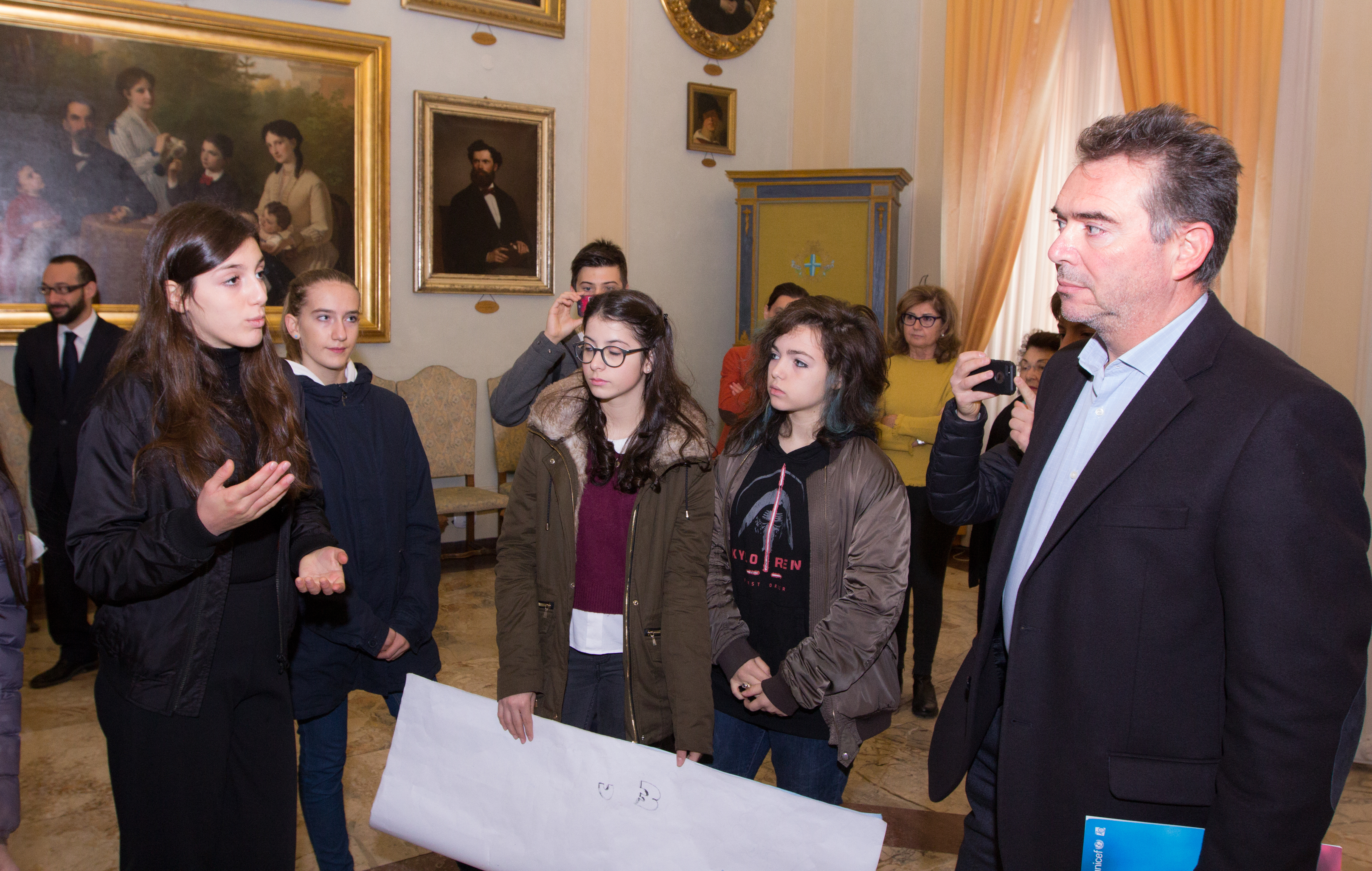 I ragazzi del liceo, che ha anche ricevuto il titolo di Scuola ambasciatrice di buona volontà, sono venuti i Municipio accompagnati da una delle insegnanti che li ha accompagnati nel progetto, Caterina Monari, e dalle rappresentanti dell’Unicef Adonella Ferraresi e Marica Porelli.