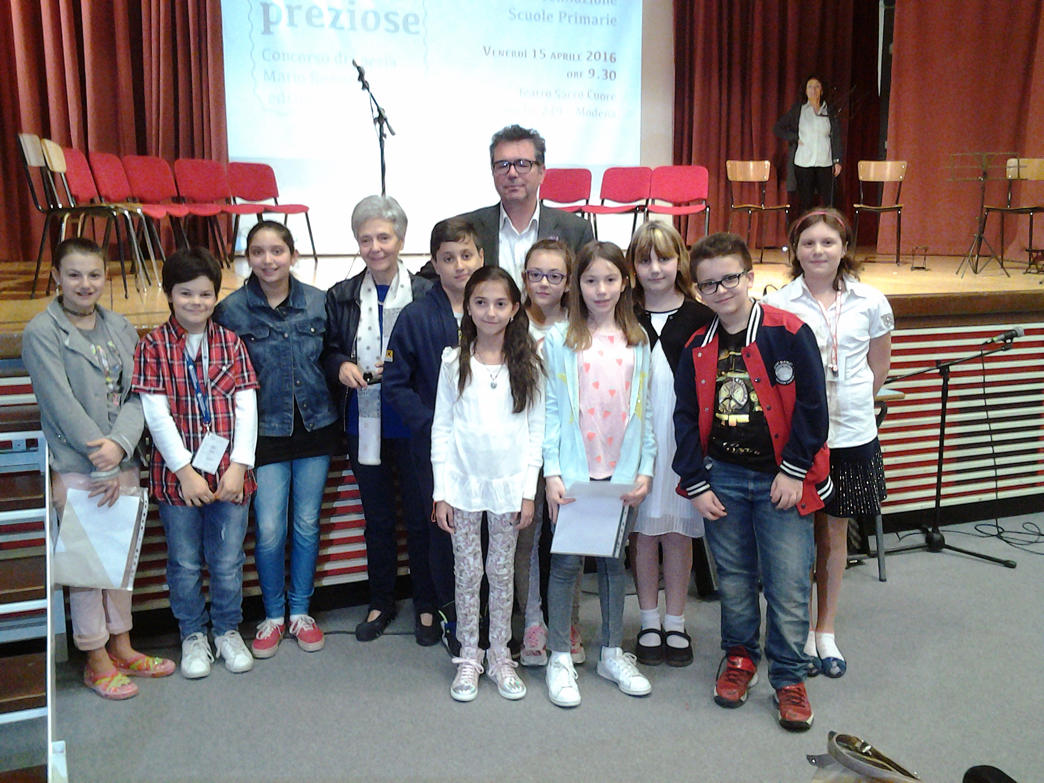 Sono state premiate questa mattina, venerdì 15 aprile, al Teatro Sacro Cuore, alla presenza dell’assessore all’Istruzione del Comune di Modena Gianpietro Cavazza, una per ognuna delle classi partecipanti, le poesie dei bambini delle scuole primarie che hanno aderito al concorso di poesia Gemme Preziose, dedicato a Mario Benozzo, che alla tutela dei diritti dell'infanzia ha dedicato la sua attività prima come insegnante e poi come amministratore.