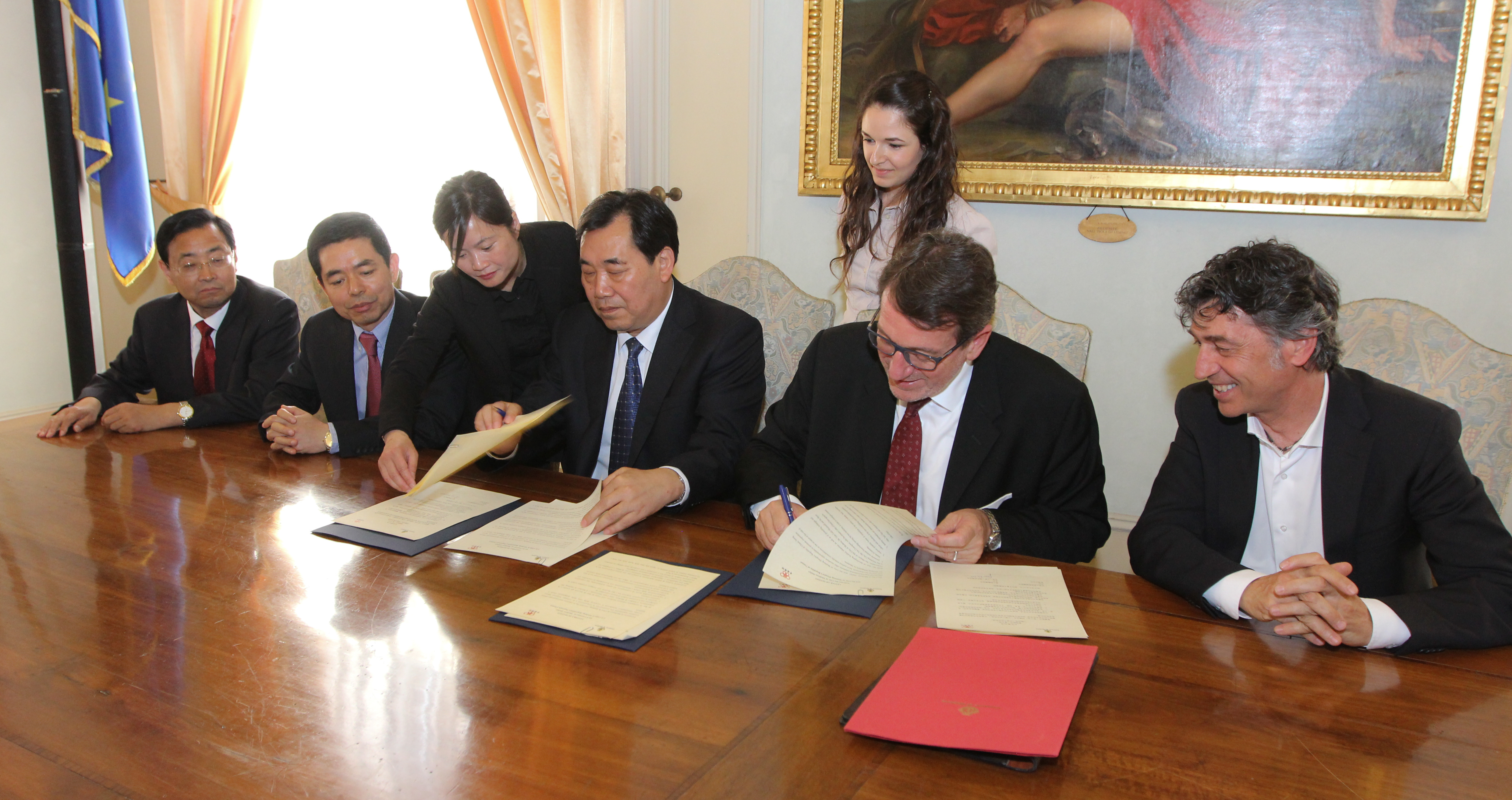 Favorire la conoscenza reciproca tra i due territori; esplorare forme di cooperazione nei settori economici, nella cultura e nell’educazione; sviluppare canali di comunicazione e scambio di esperienze. Sono gli obiettivi della lettera di intenti sottoscritta oggi, venerdì 27 maggio, nel Municipio di Modena tra il sindaco Gian Carlo Muzzarelli e Du Changwen, sindaco della città cinese di Weifang, alla guida una delegazione in visita al nostro territorio.