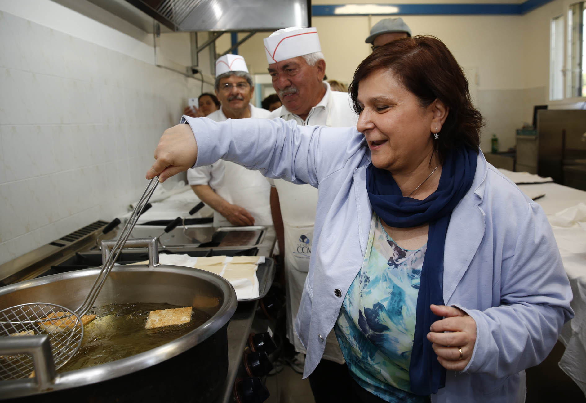 Ha inaugurato sabato 7 maggio friggendo centinaia di pezzi di gnocco generosamente offerti ai numerosi partecipanti, la nuova cucina degli orti per anziani di via Panni. Era presente anche l’assessora all’Urbanistica del Comune di Modena Anna Maria Vandelli che, subito dopo il taglio del nastro, non ha esitato a mettersi anche ai fornelli insieme ai volontari.