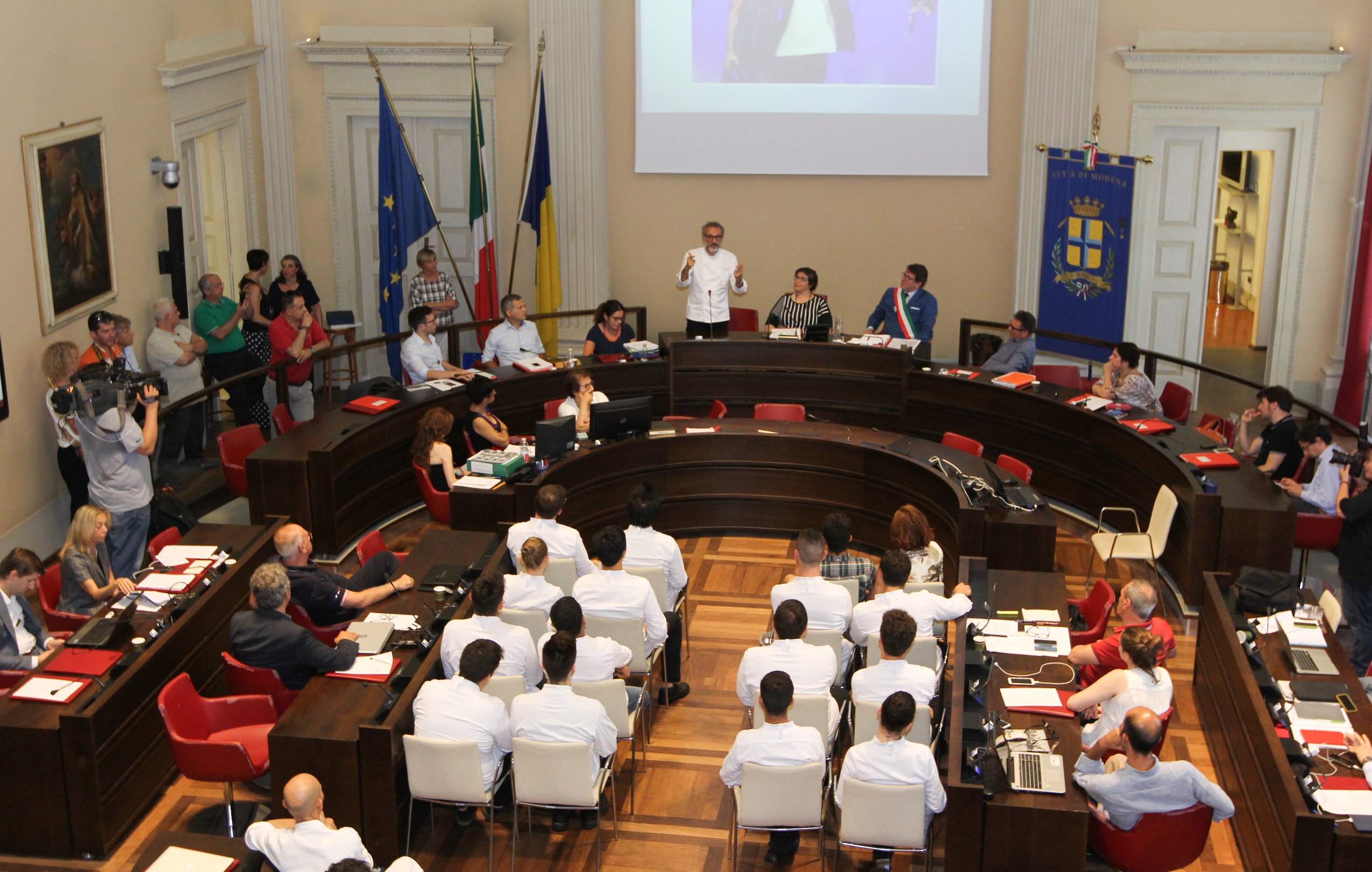 Sono le parole che lo chef Massimo Bottura ha pronunciato in Consiglio comunale a Modena durante la seduta di giovedì 7 luglio, in cui il principale organo rappresentativo della città ha voluto ringraziare lui e lo staff dell’Osteria Francescana per aver portato Modena al primo posto al mondo nella ristorazione, al vertice della classifica “50 Best Restaurant”.