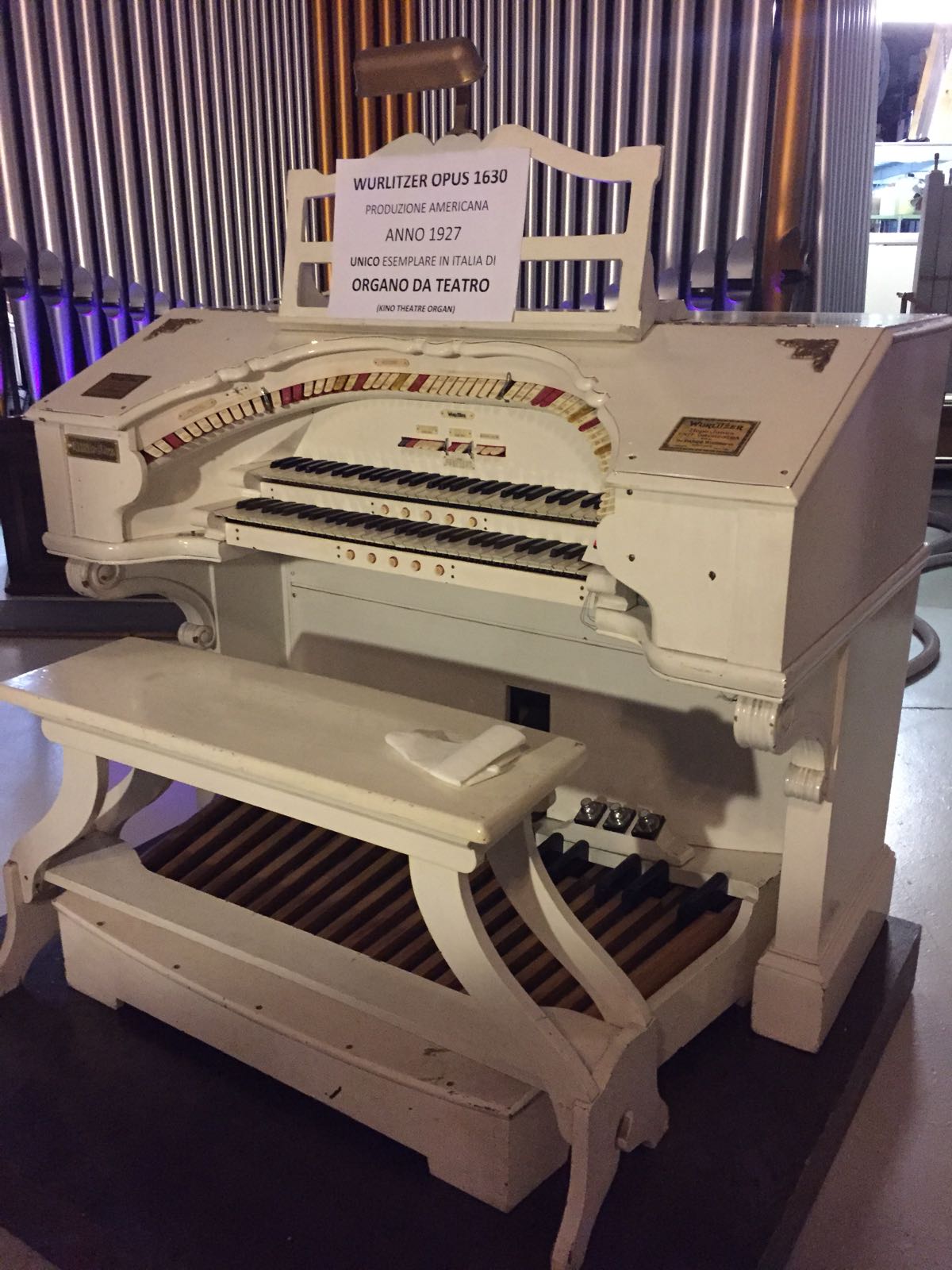L’organo da teatro Wurlitzer si distingue per gli svariati effetti sonori di cui dispone, ideati per l’accompagnamento al cinema muto. Con il sistema che gli consente di leggere i rulli di carta perforata, l’organo Moller da salone è in grado di riprodurre esecuzioni di grandi pagine del repertorio musicale in voga al tempo della costruzione dello strumento, negli anni ’30.