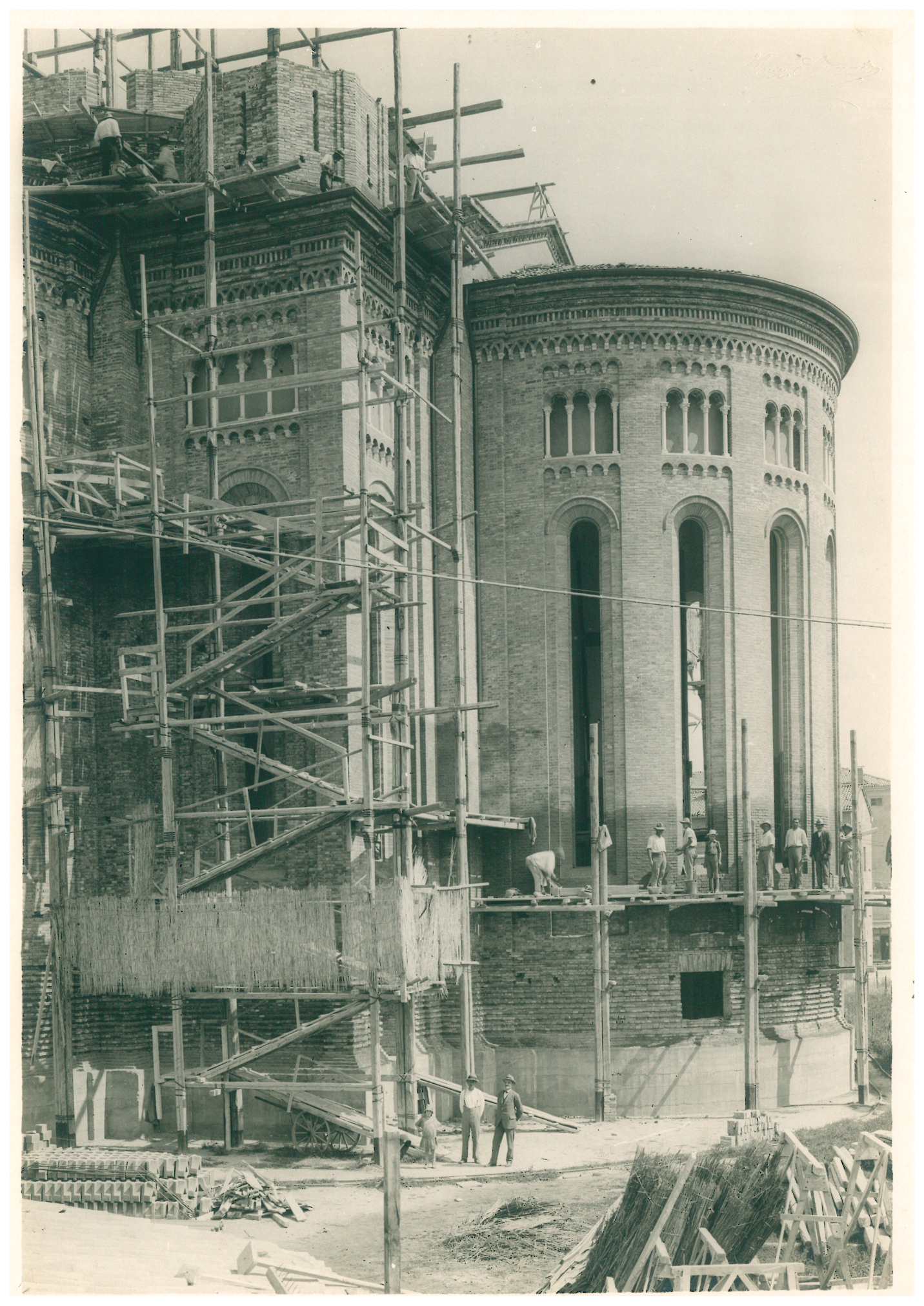 La posa della prima pietra avvenne l’8 dicembre 1923, alla presenza del re, e i lavori proseguirono fino al 1926, anno della morte di monsignor Bruni. Dopo circa un anno di inattività dovuta a difficoltà economiche, giunsero contributi da parte del re e del Governo che consentirono di terminare i lavori fino all’inaugurazione, avvenuta nel 1929.