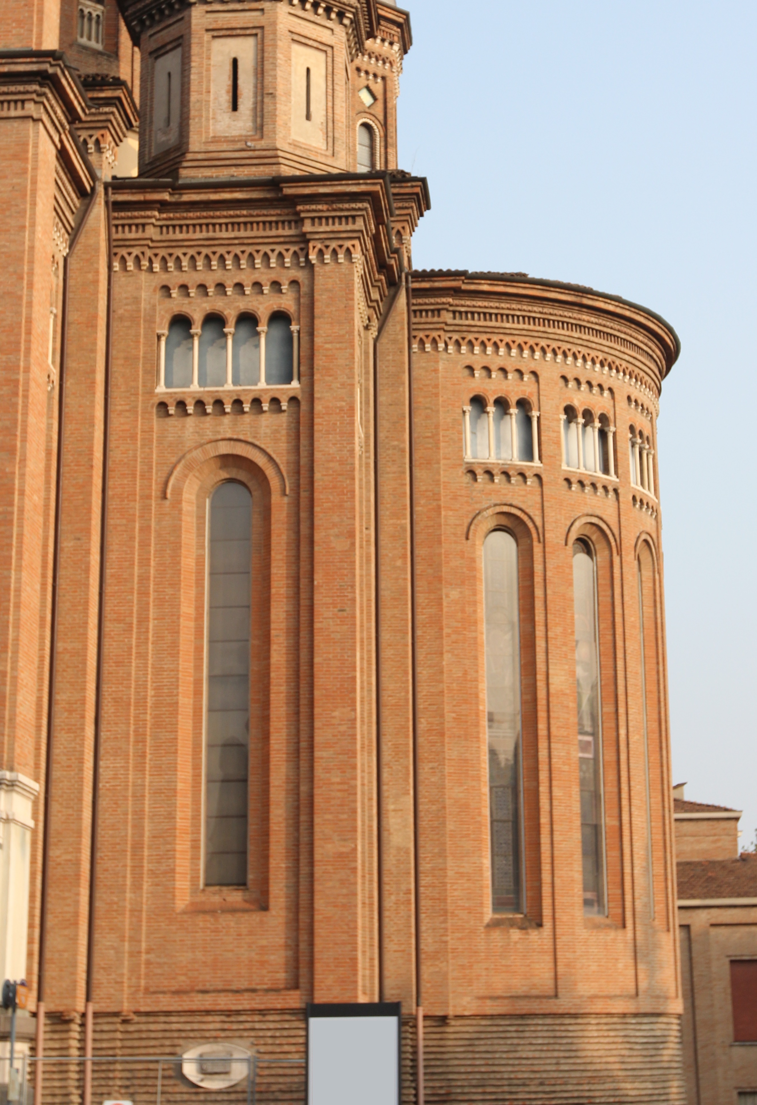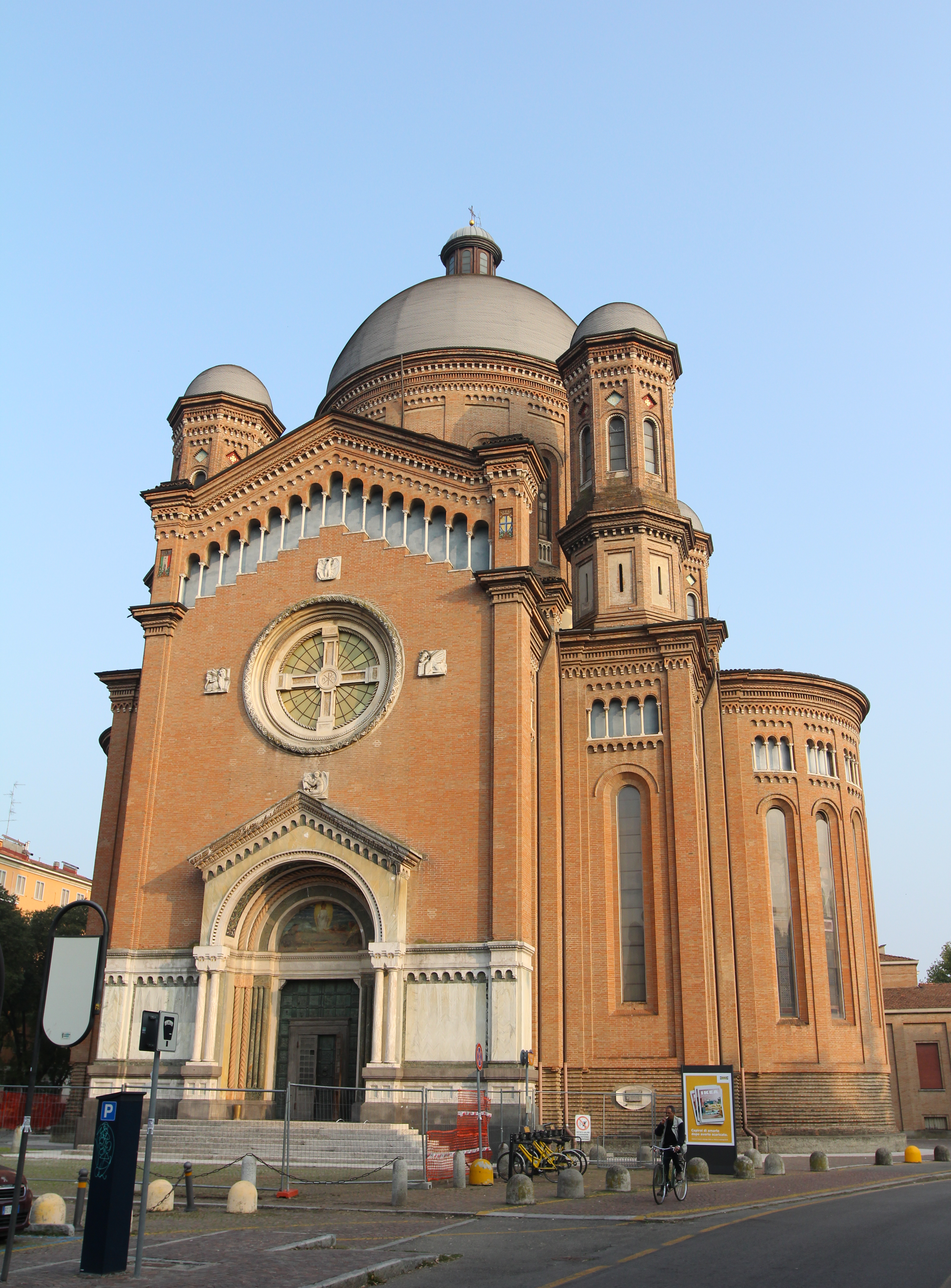 La chiesa fu realizzata per metà in maniera tradizionale, con caratteri romanici e gotici e una struttura in cemento armato; per metà con metodi moderni per l’epoca, sotto l’influenza di quanto avveniva oltralpe, quindi con l’utilizzo di strutture in ferro per le cupole, archi reticolari, chiodi battuti a caldo, profili e catene metalliche.