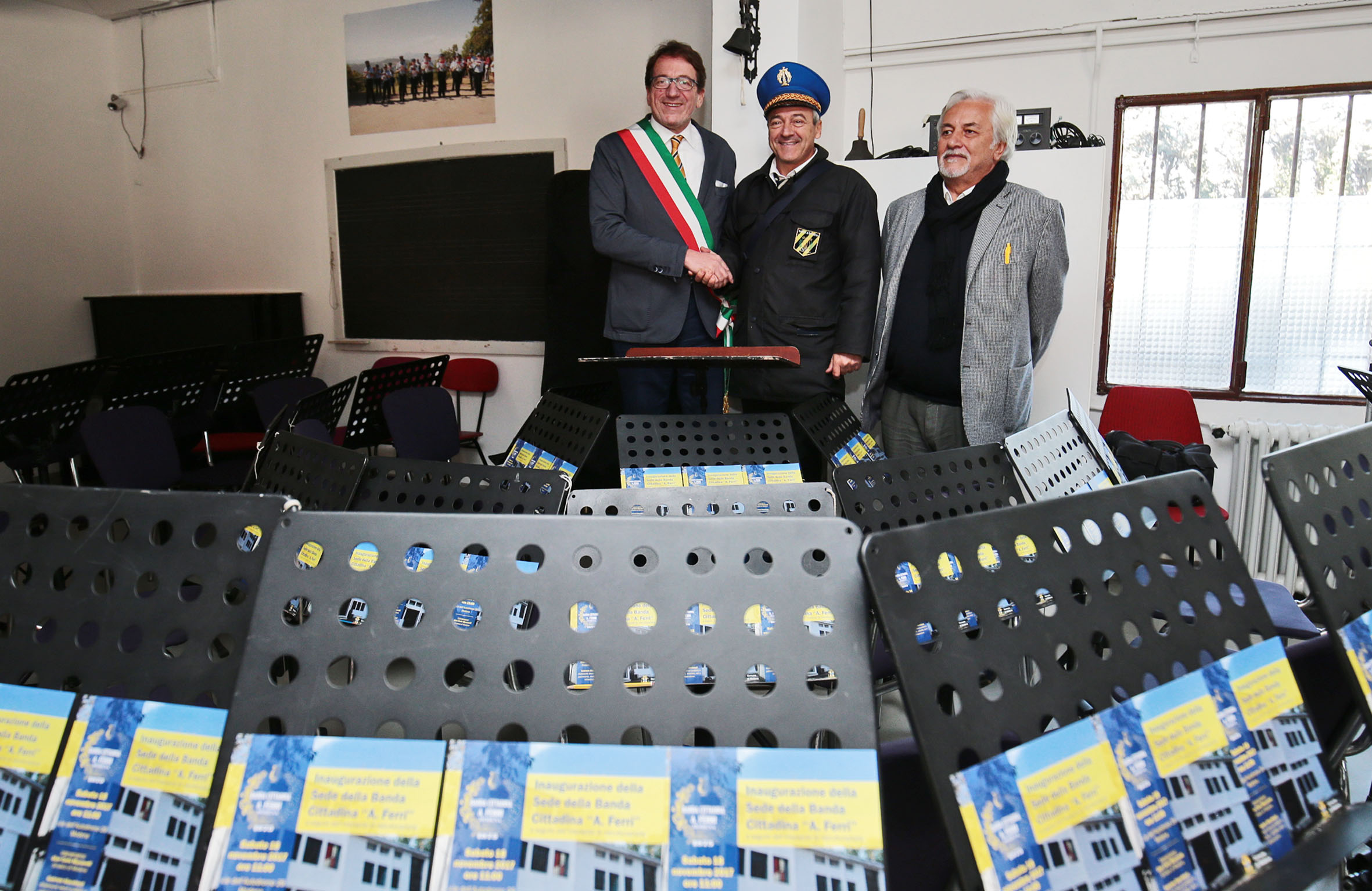 La banda cittadina “A.Ferri” ha festeggiato oggi, sabato 18 novembre, la riapertura della sede di viale Autodromo, dopo la conclusione dell’intervento di manutenzione straordinaria, con una breve cerimonia alla quale hanno partecipato il sindaco Gian Carlo Muzzarelli e l’assessore ai Lavori pubblici Gabriele Giacobazzi.