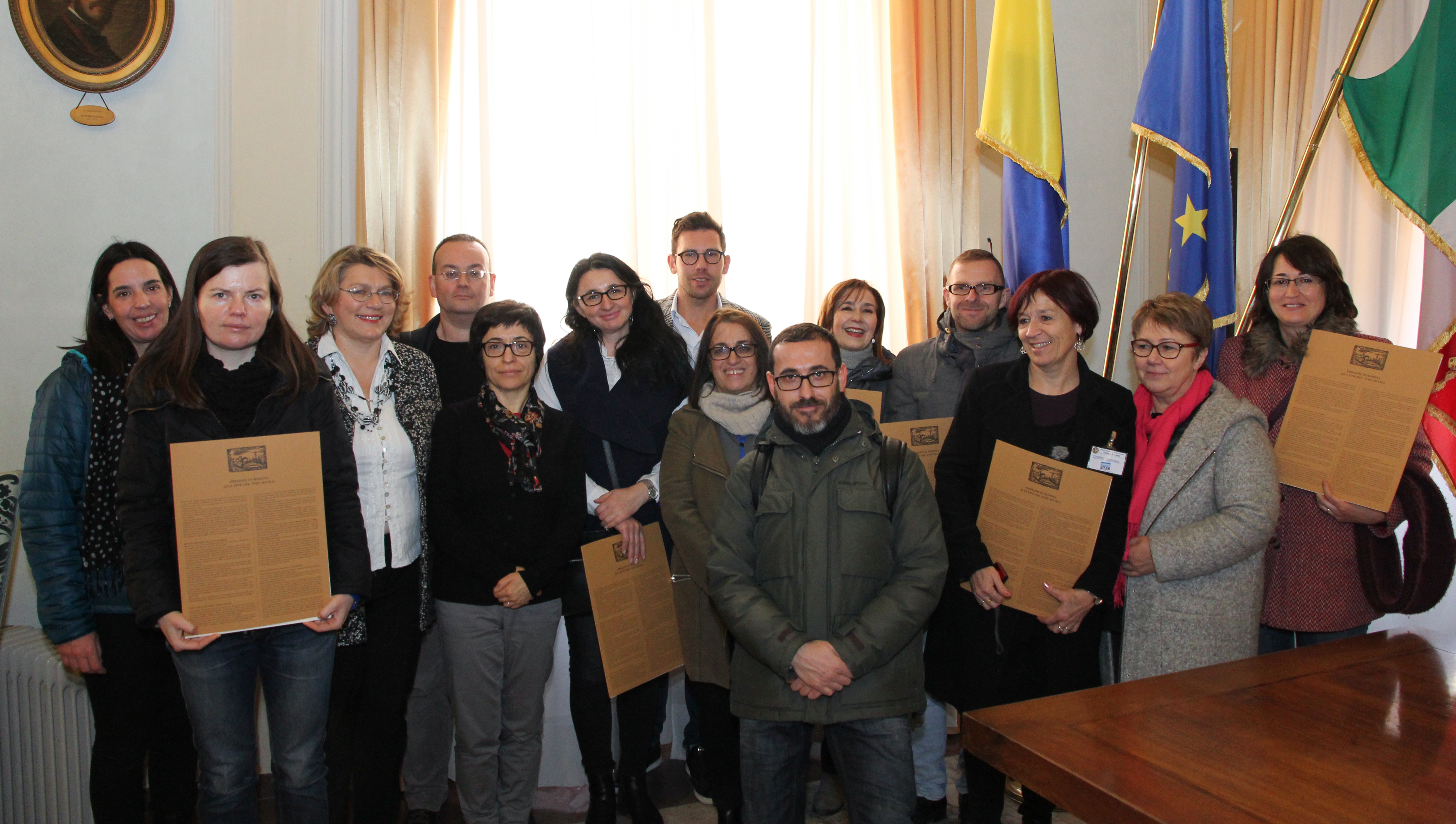 Accompagnata dalla preside dell’Istituto Barozzi Lorella Marchesini, la delegazione era composta da docenti e studenti dell’istituto modenese, del liceo classico di Ascoli Piceno e da studenti e docenti francesi, portoghesi, polacchi e romeni che resteranno in città alcuni giorni in occasione dell’avvio del progetto che durerà in tutto due anni con l’obiettivo di educare alla convivenza civile e solidale e alla conoscenza e conservazione dei beni culturali e ambientali.