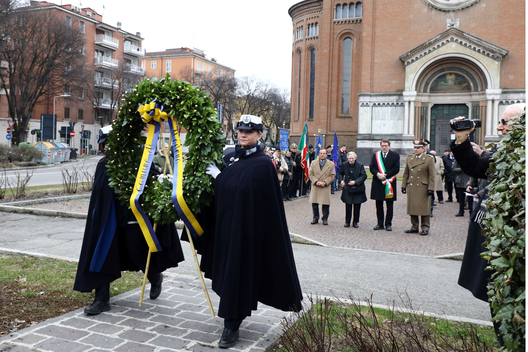 Dopo la deposizione di una corona d’alloro al Monumento, presente oltre al sindaco il comandante dell’Accademia militare Salvatore Camporeale e i rappresentanti all’Associazione nazionale Venezia Giulia e Dalmazia, che insieme al Comune ha promosso l’iniziativa, monsignor Giuliano Gazzetti vicario generale della Diocesi di Modena-Nonantola ha celebrato la santa Messa nel salone parrocchiale del Tempio dei Caduti. Al termine della messa alla professoressa Silvia Menabue, dirigente dell’Ufficio scolastico provinciale, è stata consegnata l’onorificenza “Benemerente dell’Associazione Nazionale Venezia Giulia e Dalmazia”.