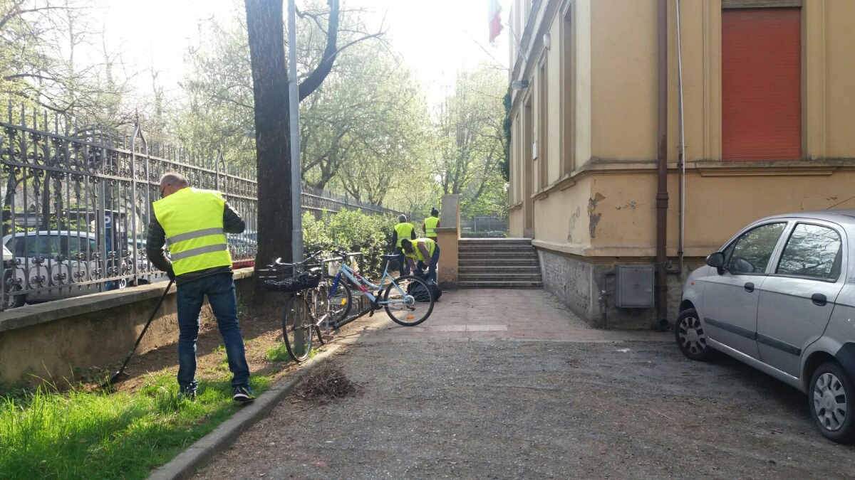 I volontari del Quartiere 1, con l’aiuto di un gruppo di rifugiati inseriti nel progetto rifugiati Sprar del Centro stranieri del Comune, seguito dalla Cooperativa Caleidos, hanno raccolto le foglie e ripulito i cortili delle scuole elementari Pascoli e medie San Carlo.
