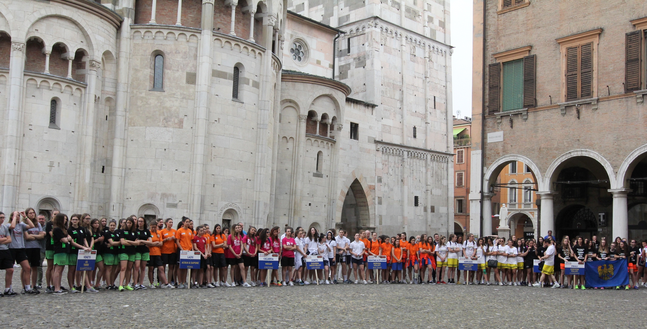 Le prime 16 squadre, che si giocheranno la qualificazione, sono arrivate in città questa mattina e sono state salutate in piazza Grande dal sindaco Gian Carlo Muzzarelli e dall’assessore allo Sport Giulio Guerzoni che, subito dopo, hanno ricevuto, nella sala di Rappresentanza del Municipio, per la presentazione della fase finale del torneo i rappresentanti delle due società organizzatrici Carmelo Borruto per la Volley Academy Modena e Marco Neviani per la Scuola di pallavolo Anderlini. Presenti all’incontro anche Eugenio Gollini, presidente Fipav Modena, e Silvano Brusori, presidente Fipav Emilia Romagna che, insieme alla Federazione italiana di pallavolo, hanno contribuito alla realizzazione dell’evento e i delegati delle squadre.
