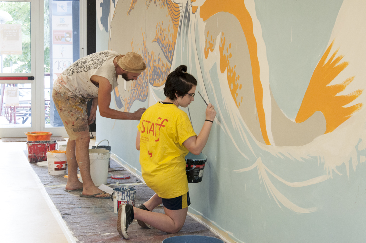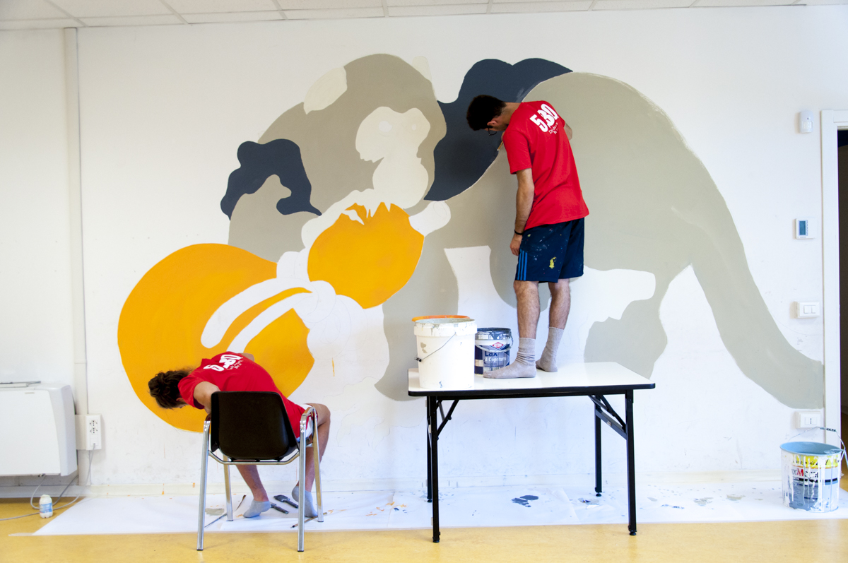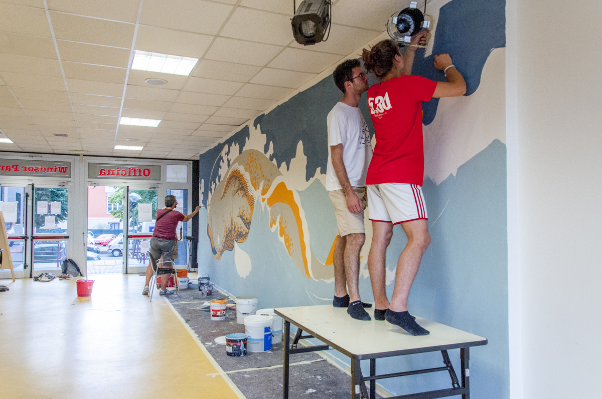 La sala è gestita dalle associazioni Officina progetto Windsor, composta dai residenti del condominio, Banca del Tempo, Legambiente, Precariart che, con la collaborazione anche della Rete degli studenti e di Officina progetto fotografia, svolgono diverse attività per migliorare la vivibilità e l’integrazione nel contesto. L’idea del murale di Zamoc nasce proprio dalla volontà delle associazioni di rendere più attraente la sala e di aprirla ancora di più verso l’esterno.