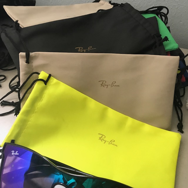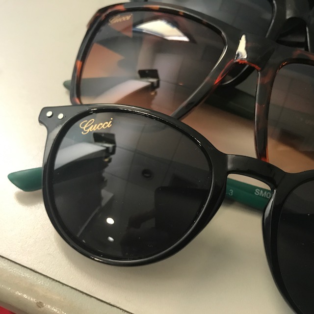 Occhiali da sole firmati Gucci, Dior, Prada e soprattutto tanti Ray Ban: modelli di gran moda con marchi prestigiosi, tutti rigorosamente falsi.