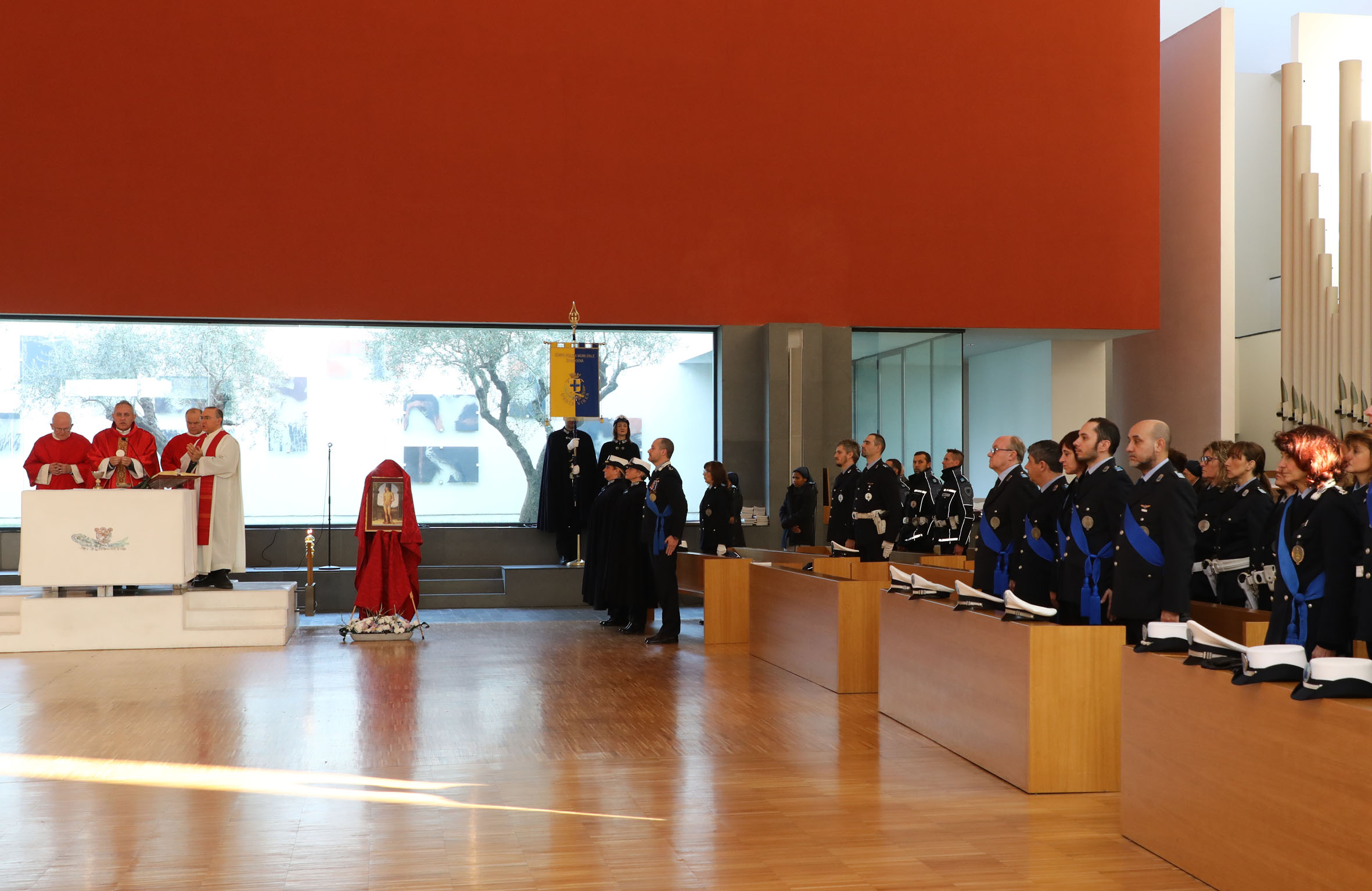 Sabato 20 gennaio la Polizia municipale di Modena ha celebrato la festa del patrono, San Sebastiano. Le autorità civili e militari hanno partecipato alla Santa Messa officiata nella Chiesa Gesù Redentore. Oltre al sindaco di Modena Gian Carlo Muzzarelli e alla presidente del Consiglio Francesca Maletti, erano presenti tra gli altri il prefetto Maria Patrizia Paba, il procuratore capo Lucia Musti, il questore Filippo Santarelli, il comandante della Guardia di Finanza Pasquale Russo, oltre ai Comandanti provinciali dei Corpi di Polizia municipale e rappresentanti dell’Accademia militare di Modena.