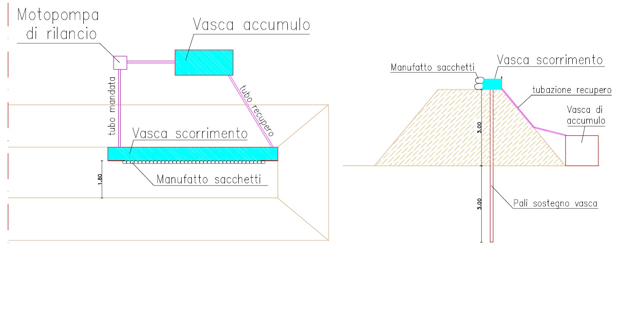 L’argine artificiale, un’innovazione in questo ambito che sarà a disposizione di tutto il Sistema di protezione civile della provincia di Modena, sarà attrezzato per ospitare contemporaneamente tre diversi scenari di emergenza idrica: nel primo, grazie all’installazione di una vasca per lo scorrimento dell’acqua, verrà simulato il ribassamento dell’argine e la conseguente fuoriuscita dell’acqua in modo da permettere ai volontari di addestrarsi nella realizzazione di un manufatto di contenimento composto da sacchetti di sabbia. Il secondo scenario, alla base dell’argine, simula un fontanazzo da circoscrivere, anche in questo caso, con sacchetti di sabbia fino a mettere in sicurezza l’area. Nell’ultimo scenario si prevede invece il varo di un telone sulla sommità dell’argine in modo da simulare la chiusura artificiale di un’erosione che potrebbe creare un’apertura passante e di conseguenza la possibile rottura dell’argine stesso.