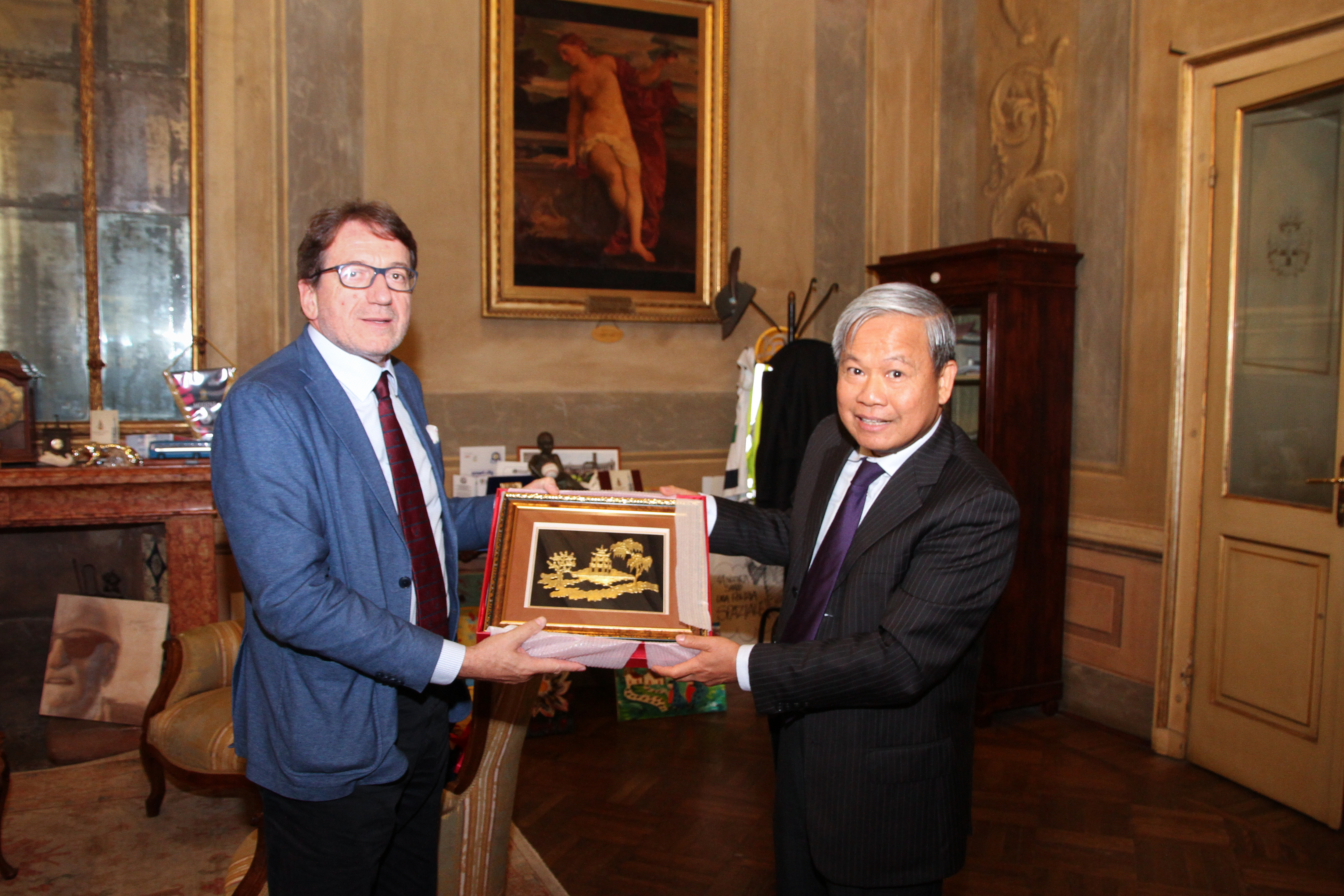 L’ambasciatore del Vietnam in Italia Cao Chienh Thien è stato ricevuto oggi, venerdì 12 ottobre, dal sindaco di Modena Gian Carlo Muzzarelli che lo ha incontrato nel Palazzo comunale. L’ambasciatore è in visita in città e il sindaco lo ha inviato ad assistere in serata allo spettacolo al Teatro comunale Luciano Pavarotti dedicato al maestro in occasione dell’anniversario della nascita.