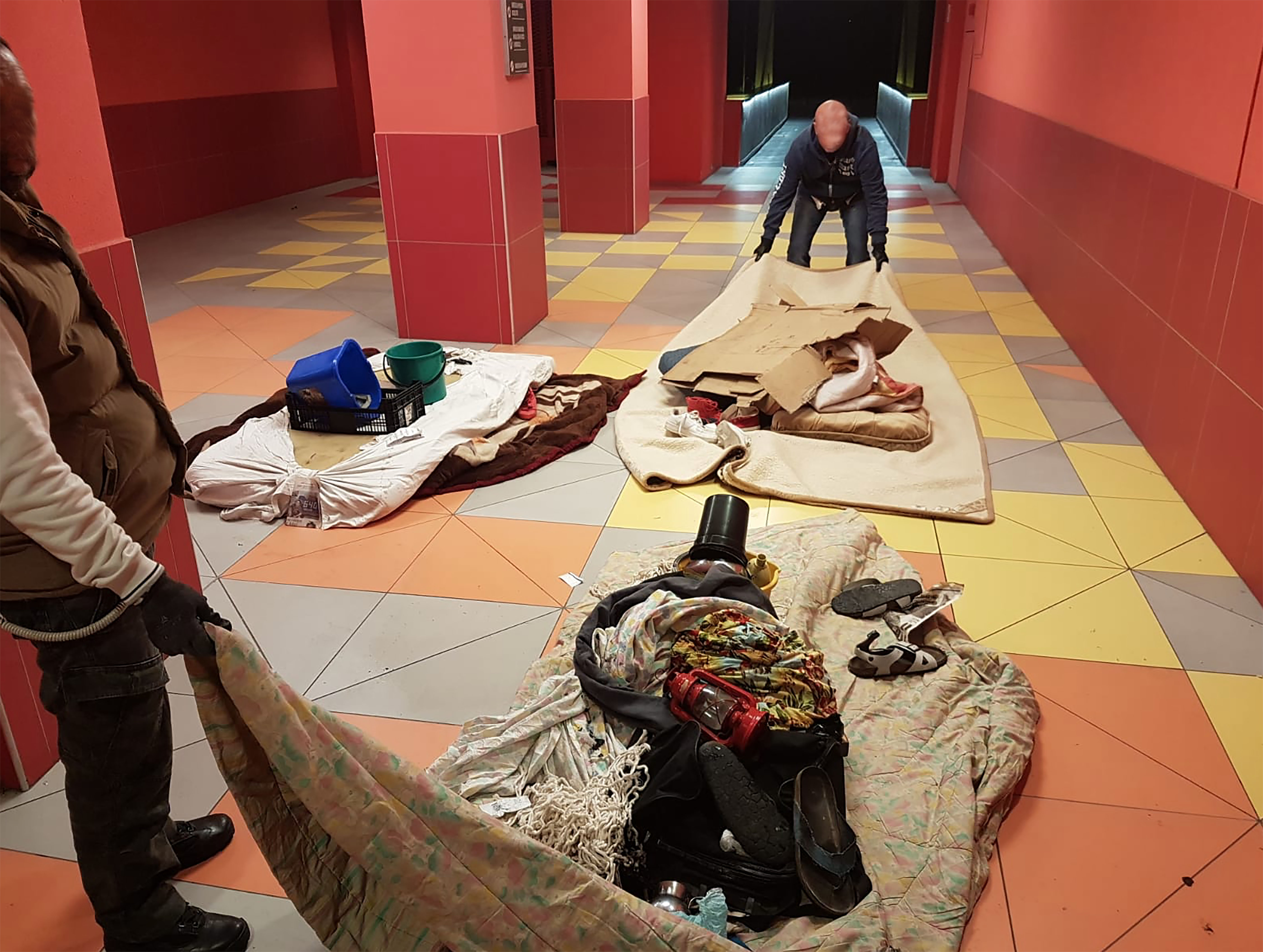 Nel complesso R-Nord gli operatori hanno inoltre sgomberato alcuni locali pertinenti alla scala antincendio, da materassi, coperte, indumenti e altri oggetti, che i due avevano accumulato utilizzandoli per allestire il loro covo, in particolare nel cavedio della scala.