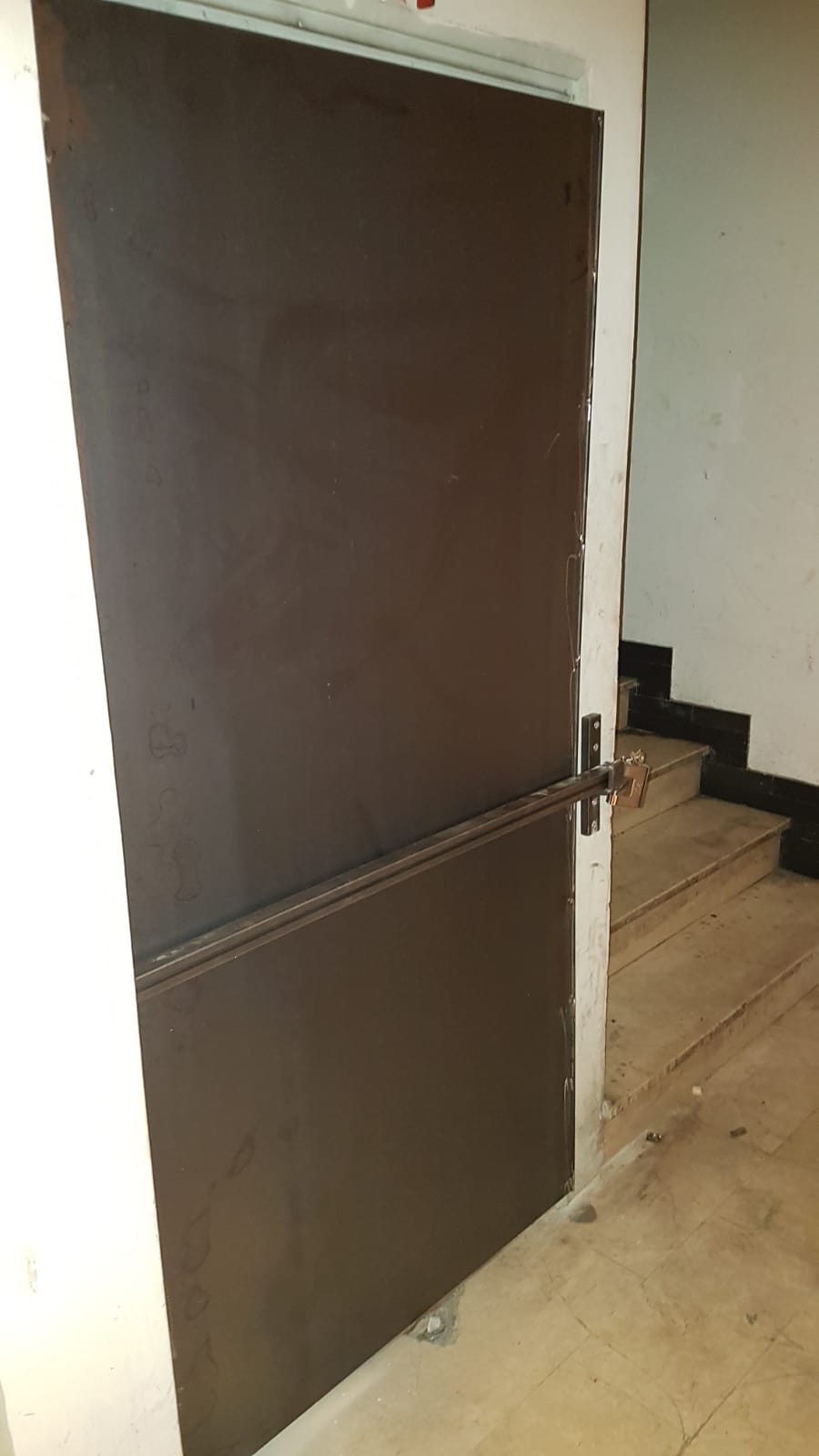 Grazie anche alla collaborazione dell’amministrazione del complesso condominiale, terminati i lavori di pulizia del vano, la porta in legno che chiudeva il locale in cui sono conservate alcune attrezzature comuni è stata sostituita con una più resistente in ferro, per altro sprangata, in modo da evitare future intrusioni.