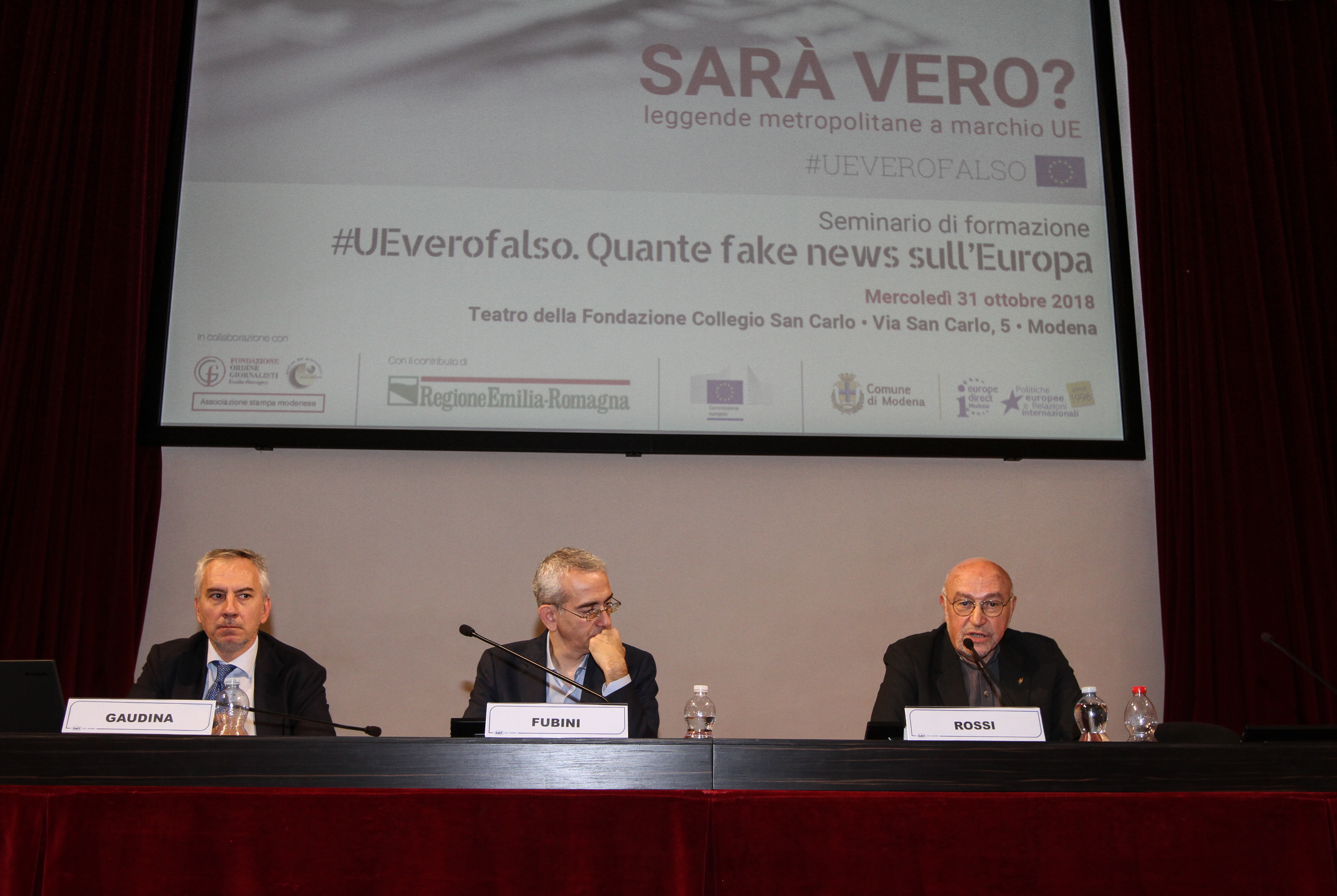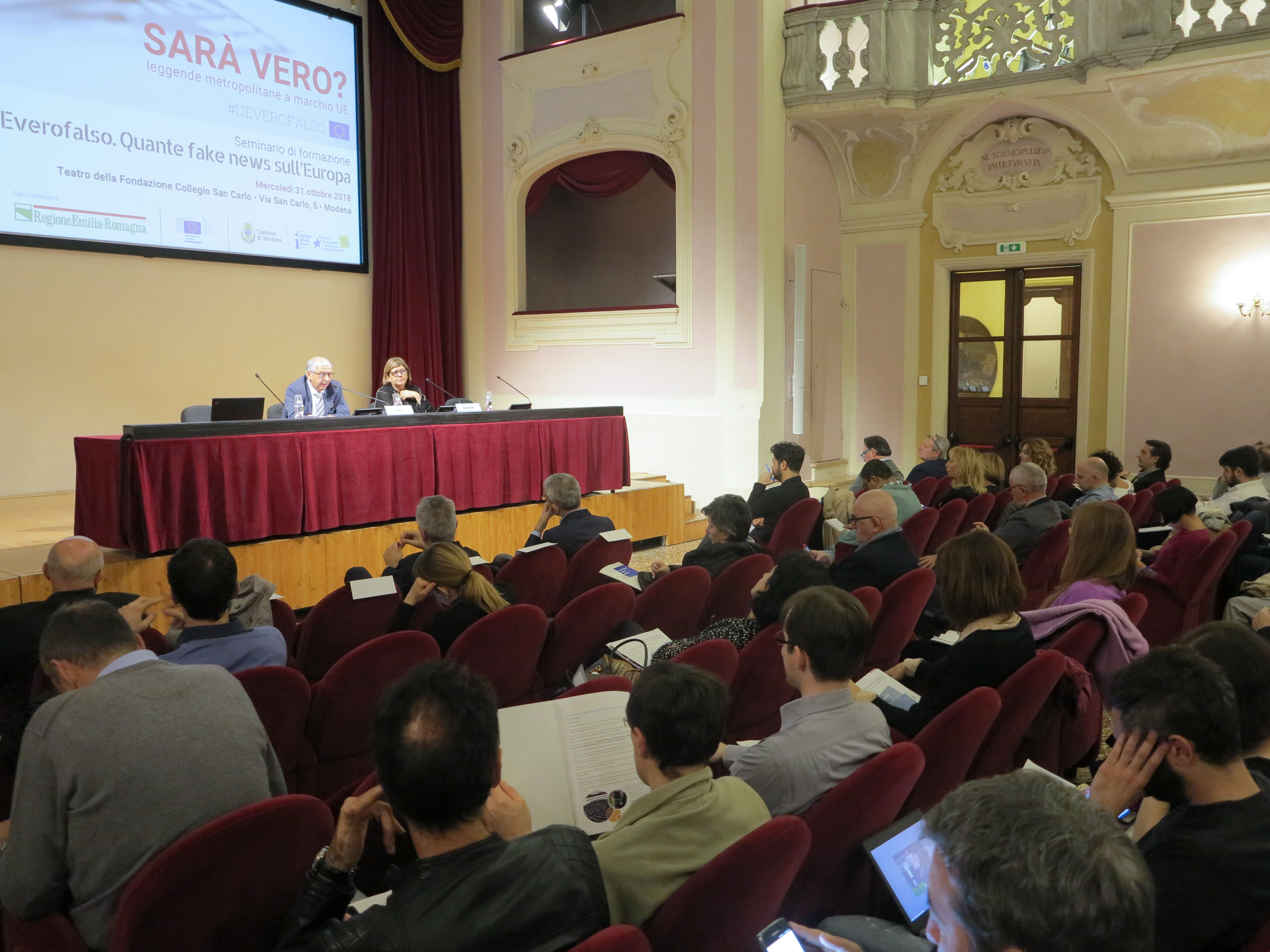 Il seminario è stato promosso dalla Fondazione dell’Ordine dei giornalisti e dallo stesso Ordine con la collaborazione dell’Associazione stampa modenese, dell’Ufficio Politiche europee e Relazioni internazionali e del centro di informazione Europe Direct del Comune, con la Rappresentanza in Italia della Commissione europea e il contributo della Regione Emilia-Romagna, nell’ambito della campagna promossa dalle istituzioni europee “#UEverofalso”.