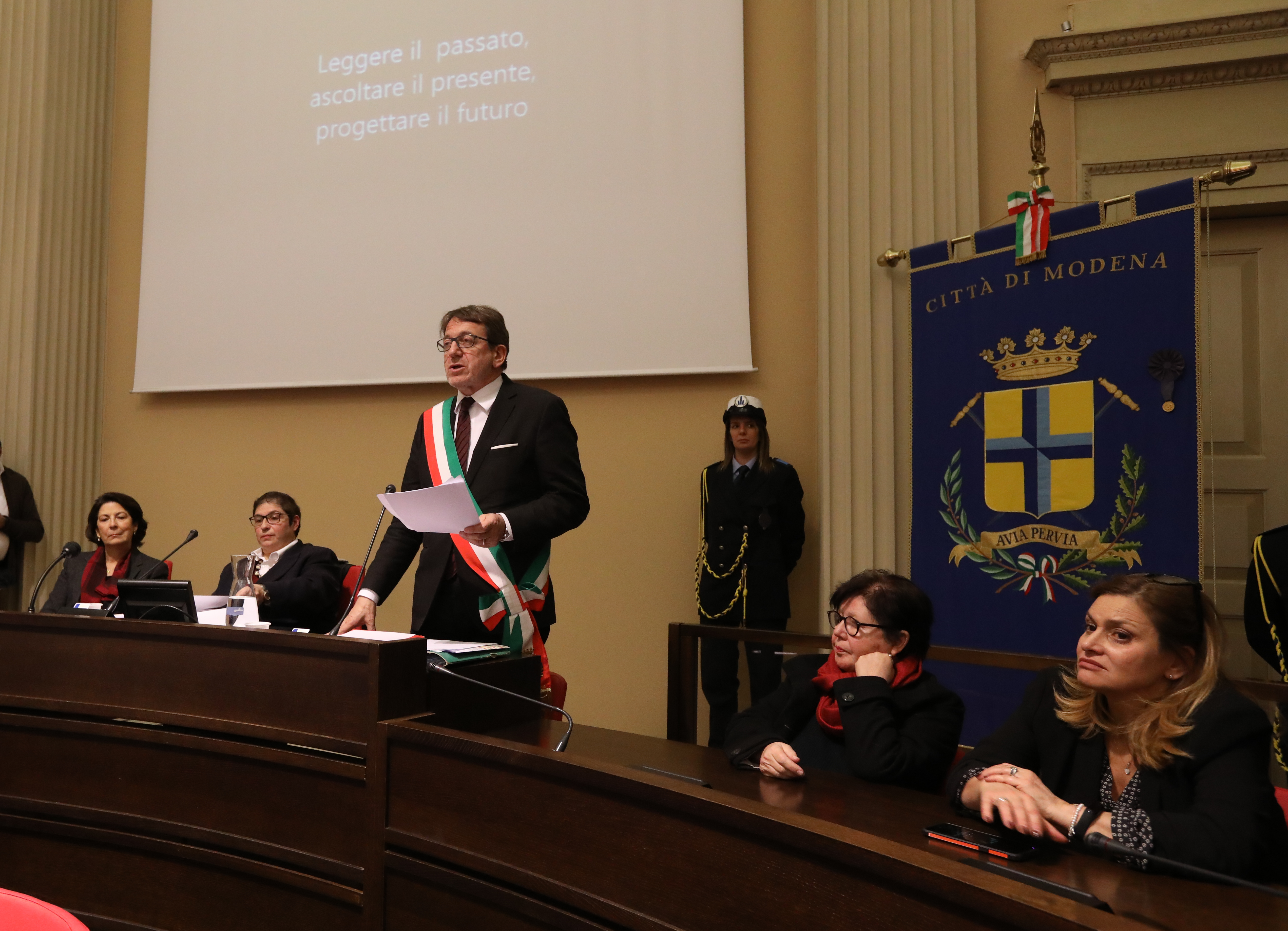 Nel suo intervento, il sindaco ha ribadito che: “Quello del razzismo e del suprematismo è un virus che si diffonde in fretta, e altrettanto in fretta va debellato, ricordando in modo vivo, con linguaggi diversi capaci di coinvolgere, perché non si alimentino quei comportamenti e opinioni che sono stati preludio dei tragici avvenimenti del secolo scorso. Oggi, tutti insieme – ha proseguito Muzzarelli - ricordiamo l’orrore delle leggi razziali, le loro vittime e Formiggini, italiano, modenese ed ebreo. E il nostro è un ricordo e insieme un impegno politico e morale a difesa e sostegno della uguale dignità di tutte le donne e di tutti gli uomini, e di un’Italia e un’Europa libere, democratiche e in pace”.
