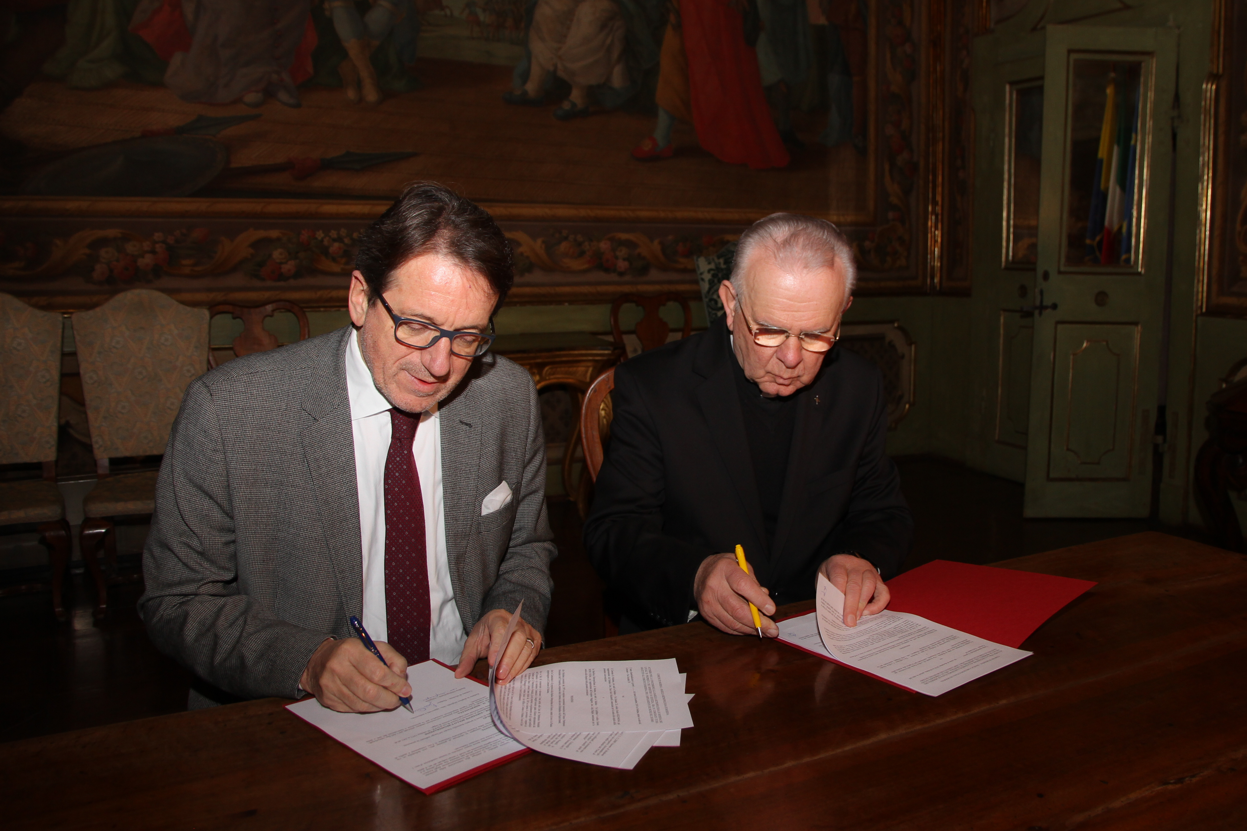 Un ulteriore passo avanti per la valorizzazione del sito Unesco di piazza Grande a Modena, patrimonio dell’umanità. Il sindaco di Modena Gian Carlo Muzzarelli e monsignor Luigi Biagini hanno firmato, martedì 18 dicembre a Palazzo Comunale, l’accordo di concessione alla Basilica Metropolitana di Modena per l’ampliamento dei Musei del Duomo, dei locali di proprietà del Ministero di Giustizia ora in comodato d’uso gratuito al Comune di Modena. Alla firma era presente anche Francesca Piccinini, coordinatrice del comitato di pilotaggio del sito Unesco.