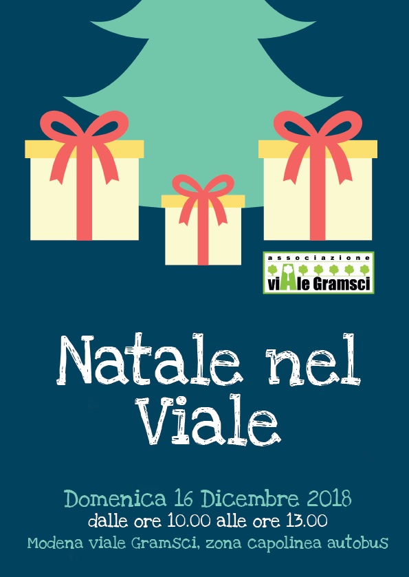 La festa “Natale nel Viale” è a cura dell’Associazione Viale Gramsci, con la collaborazione dell’Associazione “Zero in condotta” e il patrocino del Comune di Modena, Quartiere 2, nell’ambito del Progetto Modena città sicura con la partecipazione di “PassMo”, portierato di animazione e sicurezza sociale Modena.