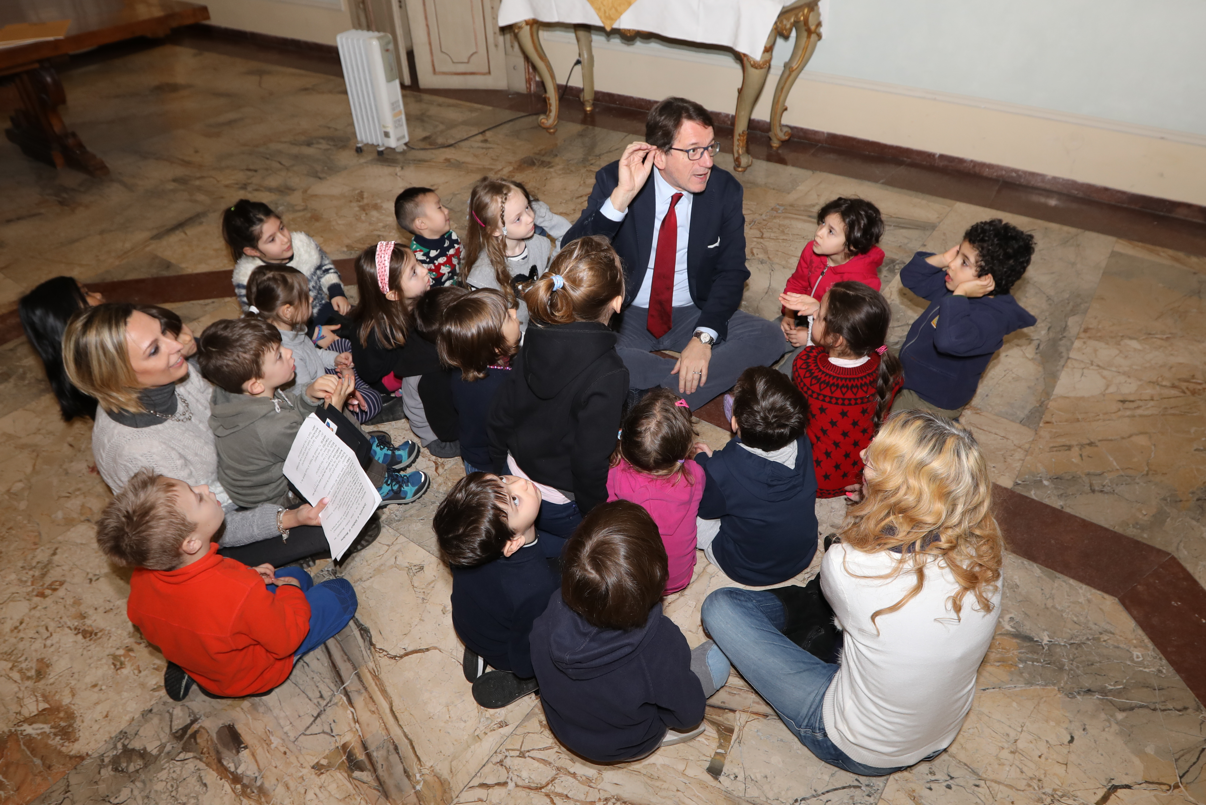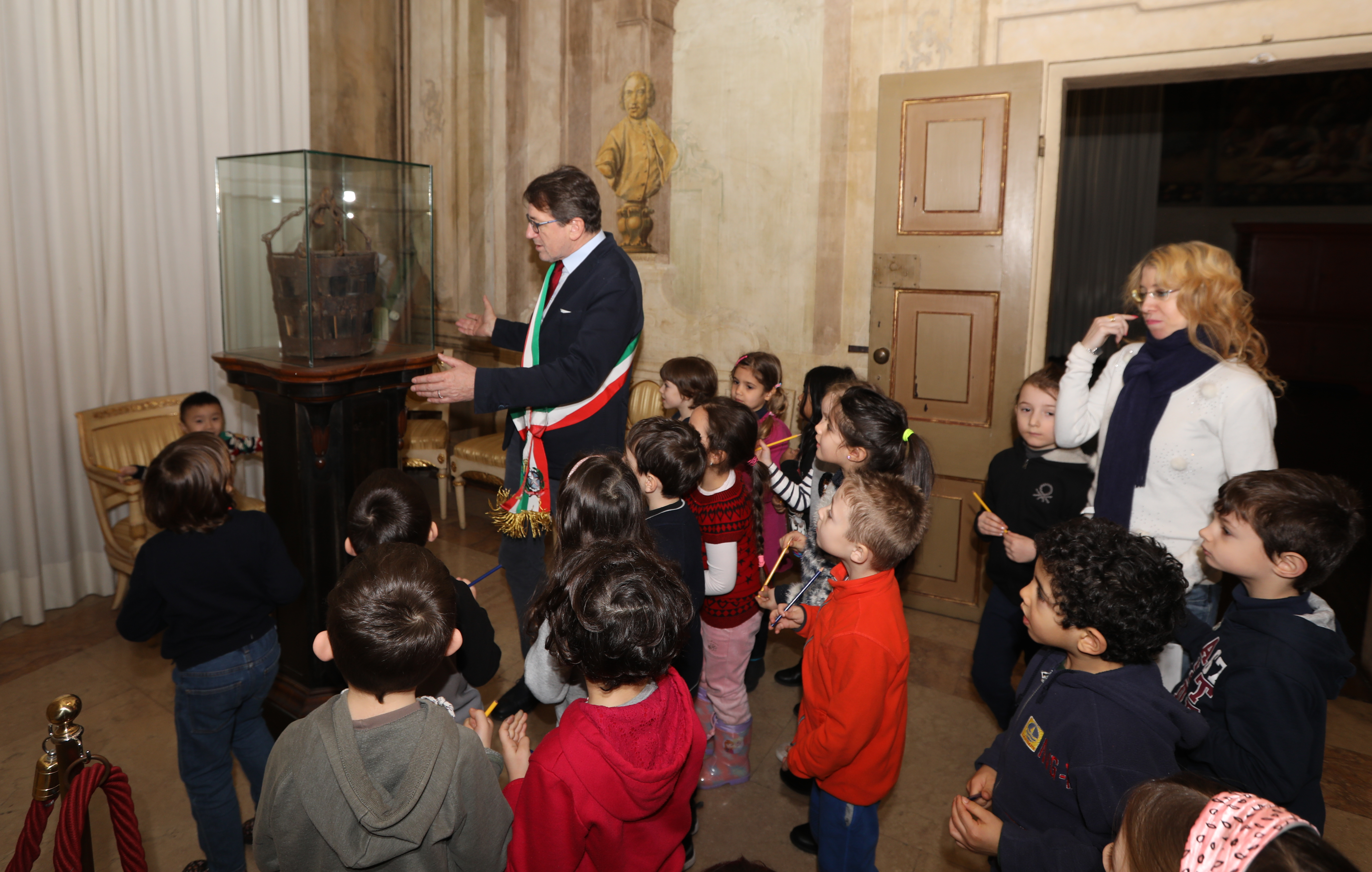 Detto fatto. Nella mattinata di venerdì 23 febbraio i piccoli della scuola d’infanzia Edison, accompagnati dalle loro educatrici, sono stati accolti dal sindaco Gian Carlo Muzzarelli e al primo cittadino hanno subito chiesto i motivi per cui avesse “rubato la Secchia”.