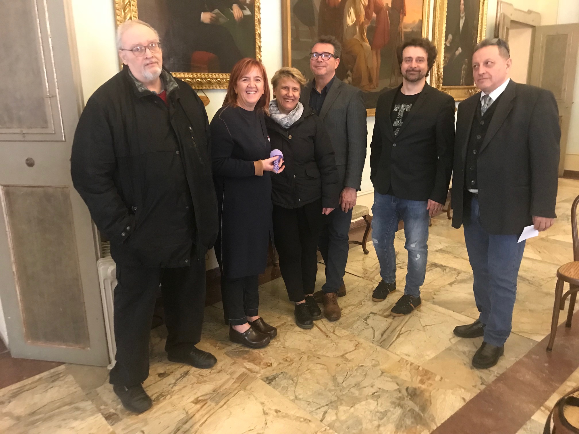 La serata benefica - come di consueto il ricavato degli ingressi a 10 euro, detratte alcune spese, andrà a una onlus – è stata presentata oggi, venerdì 16 marzo, a Palazzo Comunale da Gianpietro Cavazza, vicesindaco di Modena e assessore alla Cultura, Giacomo Ingrami, organizzatore e presentatore della serata, Davide Turci, direttore artistico, Roberto Roganti, de I Poetineranti, organizzatore e responsabile della sezione poetica, e Giovanna Cuomo, referente per Modena dell’associazione “Cuore di Maglia” destinataria dei proventi della serata. L’associazione è presente in tutta Italia, con volontarie che confezionano copertine, scarpette e cuffiette per bambini nati pretermine e figli di famiglie in difficoltà.