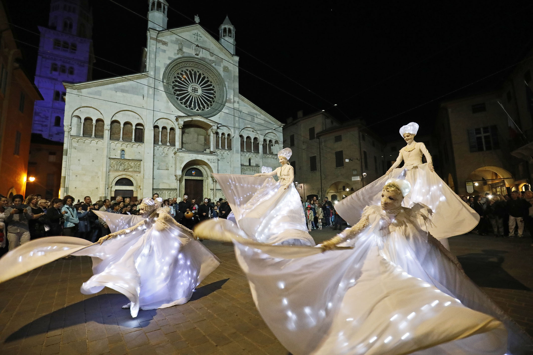 In tutto il centro storico di Modena, arte, musica, teatro, danza, sport, acrobati e artisti di strada. Oltre 180 appuntamenti in una notte, al chiuso e all’esterno. Aperti fino a mezzanotte monumenti, biblioteche, chiese, musei e gallerie con mostre e animazioni. Vetrine accese e porte aperte anche in negozi ed esercizi del centro, che partecipano con le associazioni culturali animando le loro zone, anche grazie a contributi comunali e al sostegno organizzativo di Modenamoremio.