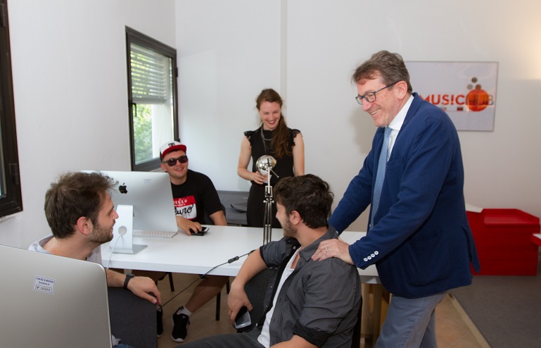 “Coworking 71MusicHub” è stato inaugurato questa mattina, lunedì 21 maggio, dal sindaco di Modena Gian Carlo Muzzarelli e dall’assessora alle Politiche giovanili Irene Guadagnini che, insieme ai responsabili del Centro musica, hanno anche fatto il punto sullo stato di avanzamento dei lavori di riqualificazione della torre dell’edificio industriale che ospita il Centro.