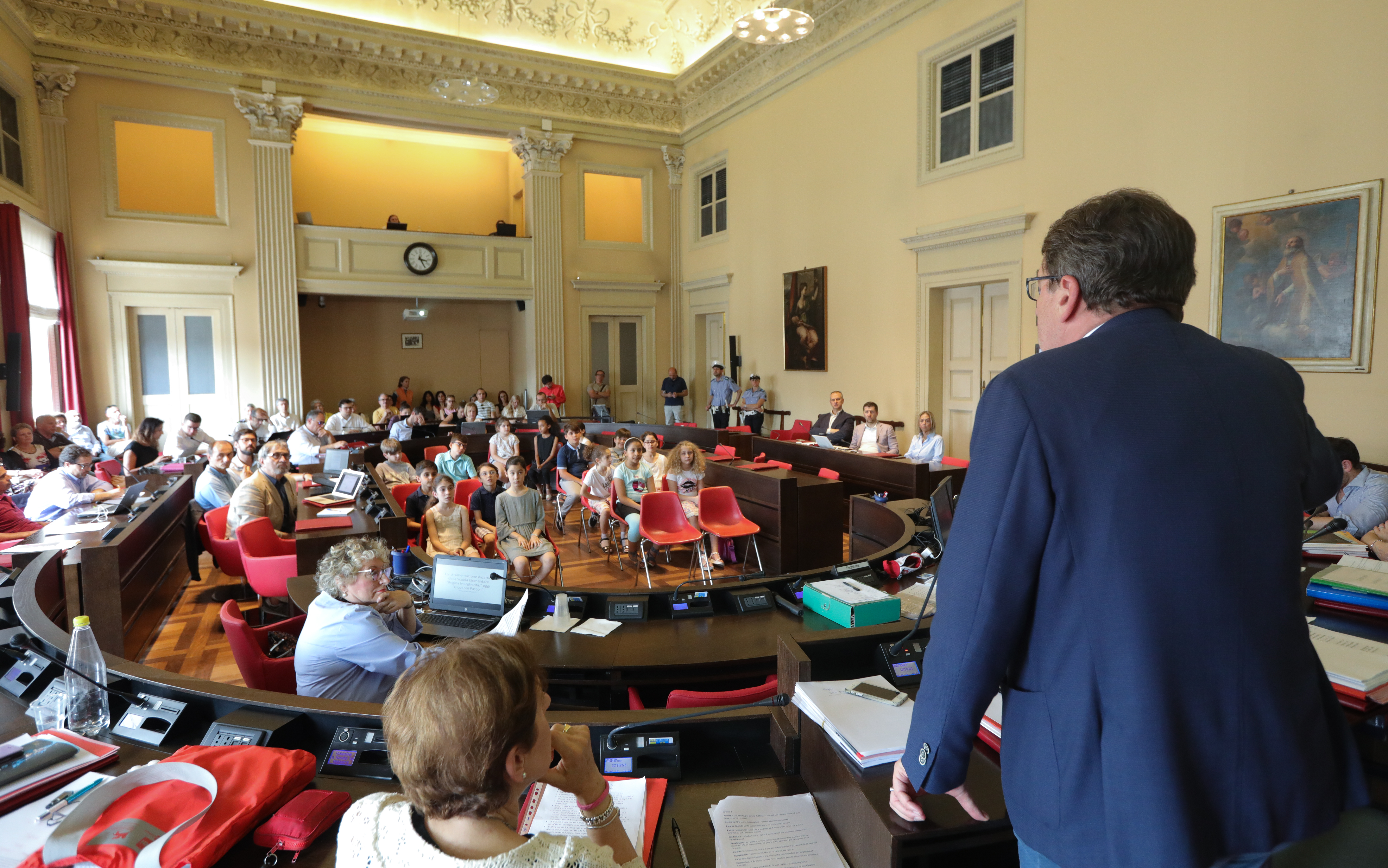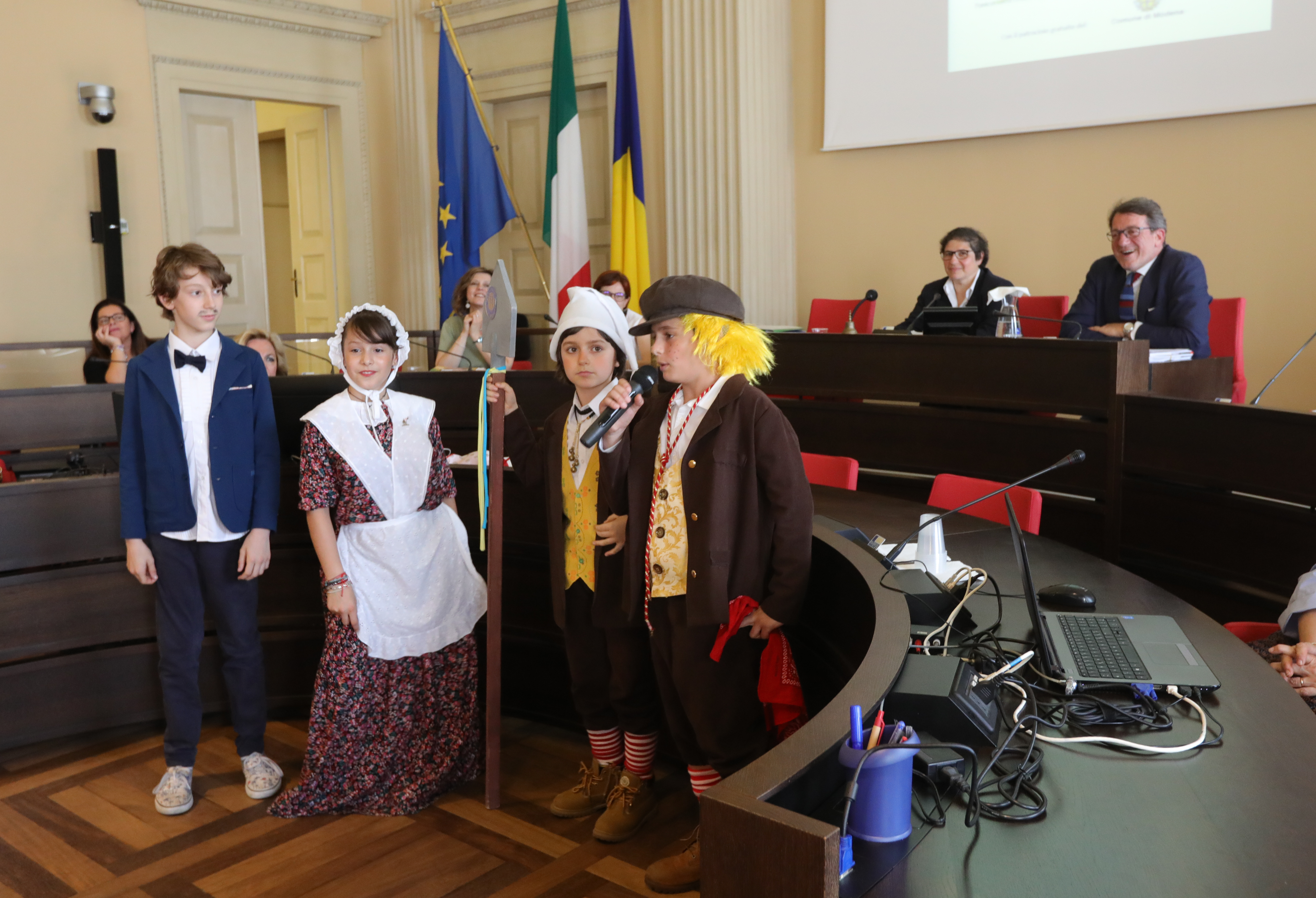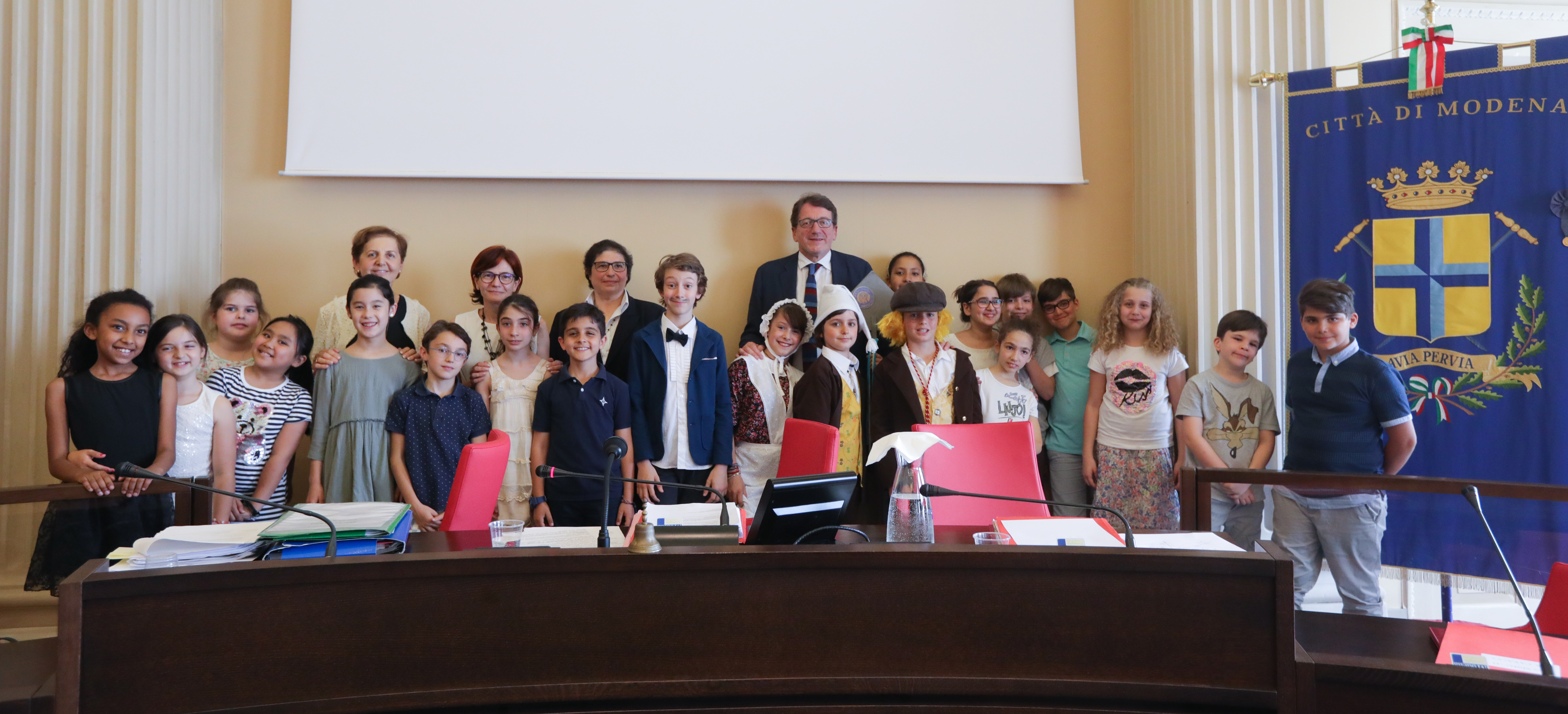 È stata una vera e propria festa quella che si è svolta oggi, lunedì 4 giugno, in Consiglio comunale a Modena per la celebrazione del centenario delle scuole Pascoli. Ad animare l’Aula, per una volta, invece della dialettica dei consiglieri, è stata una rappresentanza di alunni delle classi quarte e quinte della scuola, accompagnati da insegnanti e genitori.