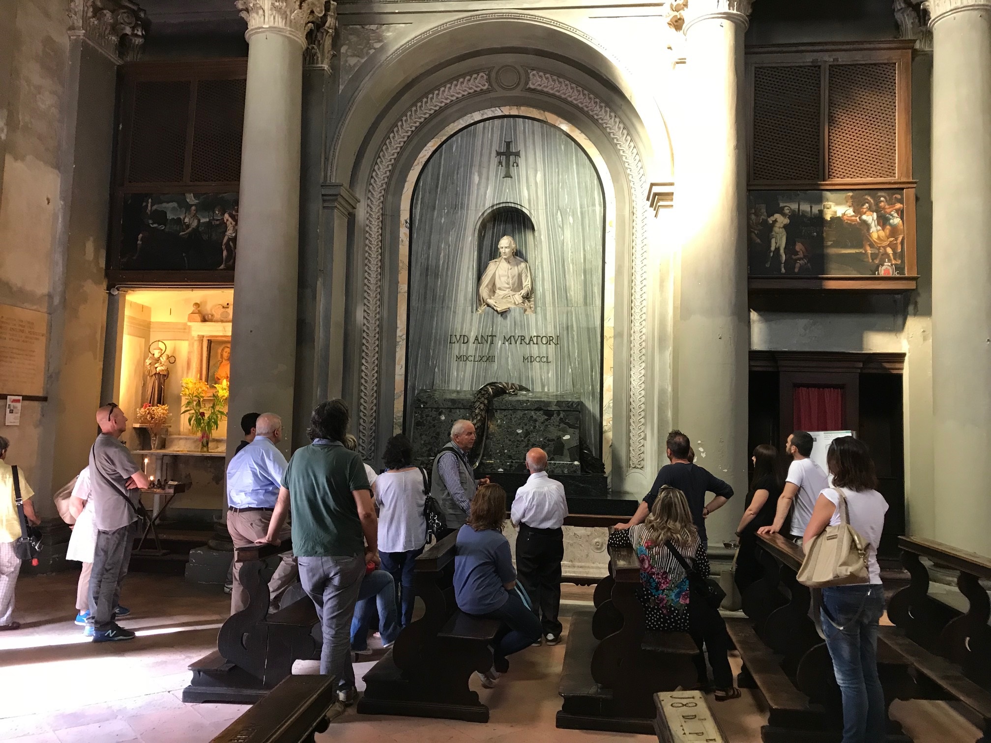 Si tratta di una iniziativa, attivata dal Servizio comunale Promozione della città e Turismo in collaborazione con la Deputazione di storia patria e la Confraternita di San Sebastiano, che promuove un itinerario guidato nel centro storico di Modena, sui luoghi più significativi per la vita dell’illustre personaggio considerato padre della storiografia italiana, che fu bibliotecario del duca Rinaldo I d’Este e parroco della chiesa di Santa Maria della Pomposa.