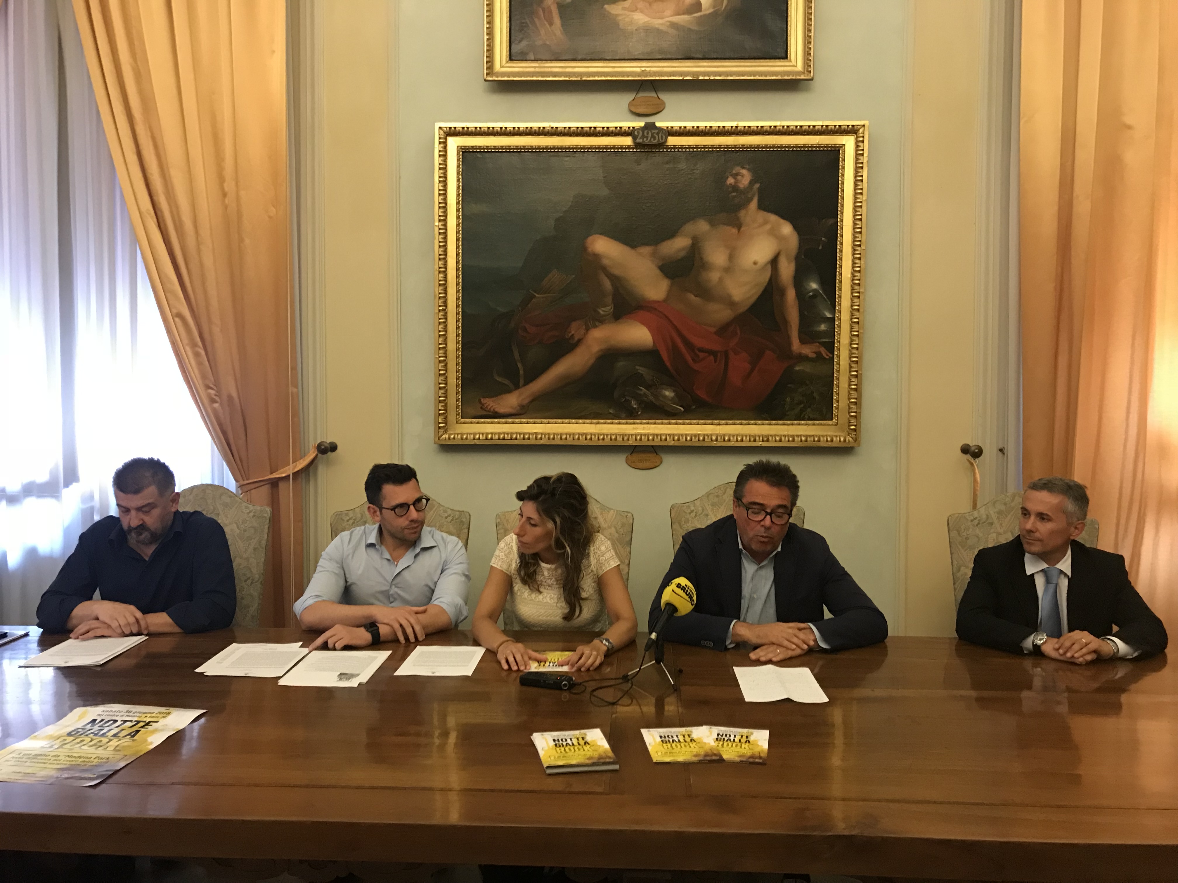 La Notte gialla rock di Modena è stata presentata questa mattina, martedì 26 giugno in conferenza stampa in Municipio, da Gianpietro Cavazza, vicesindaco e assessore alla Cultura, Ludovica Carla Ferrari, assessora a Promozione della città e turismo, Andrea Bosi, assessore al Centro storico, Diego Ferrari di Radio Stella e Paolo Paoli del Gruppo Hera.