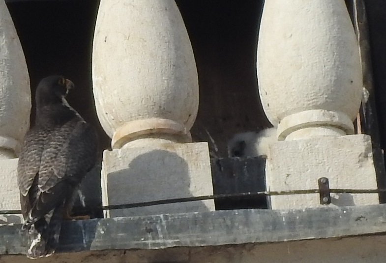 È la prima volta che la coppia, che vive da diversi anni sull’ultima balconata della Ghirlandina, riesce a portare a schiusa le uova che ha deposto. I falchi pellegrini già dal 2000 frequentavano la sommità della torre, corteggiandosi ma senza potersi riprodurre per la mancanza di un ricovero idoneo. In occasione del restauro della Ghirlandina, iniziato nel 2008 e concluso nel 2012, su consiglio degli operatori del Servizio Veterinario dell’Ausl, è stato quindi posato un nido artificiale che sembra essere stato molto gradito dai falchi che finalmente sono riusciti ad allargare la famiglia. La presenza dei due pulli, così si chiamano i pulcini del falco, è stata osservata con cannocchiale e teleobiettivo da livello strada, per non interferire, dai volontari di alcune associazioni che stanno seguendo il fenomeno.