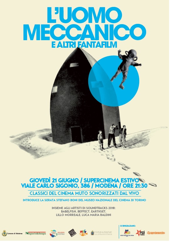 Il progetto di sonorizzazioni dal vivo “Soundtracks – Musica da film” - curato da Centro Musica del Comune di Modena, progetto Sonda e associazione Muse, progetto Arts & Jam, per la direzione artistica di Corrado Nuccini dei Giardini di Mirò e con il contributo della Fondazione Cassa di Risparmio di Modena - propone nel 2018 lo spettacolo “L'uomo meccanico e altri fantafilm”. Nella serata, in cui si fondono cinema e musica, tradizione e modernità in un viaggio mozzafiato nella fantascienza, si esibiscono Babelfish, Beffect, Earthset, Lillo Morreale, Luca Maria Baldini. Tutti i musicisti saranno impegnati nelle sonorizzazioni dal vivo di quattro classici di fantascienza del cinema muto di André Deed, Fritz Lang, Georges Méliès. Introduce Stefano Boni, Museo Nazionale del Cinema di Torino.