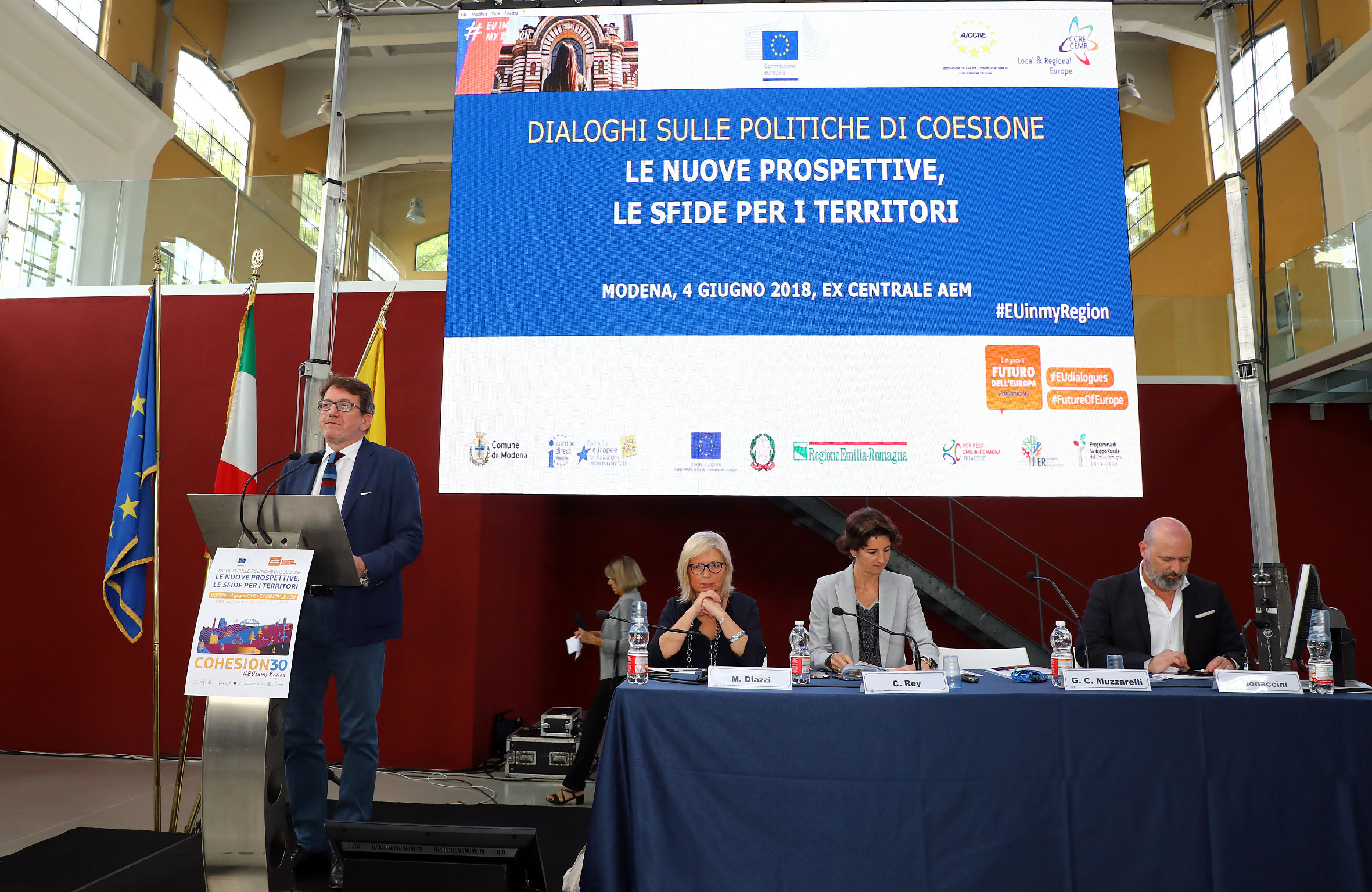 Sono i cinque obiettivi strategici della Commissione europea per la programmazione delle risorse da assegnare agli investimenti tra il 2021 e il 2027 che il sindaco di Modena Gian Carlo Muzzarelli ha riepilogato aprendo lunedì 4 giugno il convegno “Cohesion30. Dialogo sulle politiche di coesione: le nuove prospettive, le sfide per i territori” al quale sono intervenuti rappresentanti delle istituzioni europee, nazionali, regionali e locali, oltre che del mondo produttivo e sociale. L’iniziativa, organizzata da Aiccre (l'Associazione italiana per il Consiglio dei Comuni e delle Regioni d'Europa), Regione Emilia-Romagna e Comune di Modena, si è svolta, con circa 200 partecipanti provenienti da tutta la regione, nella Galleria intitolata a Edmondo Berselli dell’ex Centrale Aem riqualificata grazie ai finanziamenti del Por Fesr 2014-2020 per diventare Laboratorio Aperto per la cultura, lo spettacolo e la creatività.