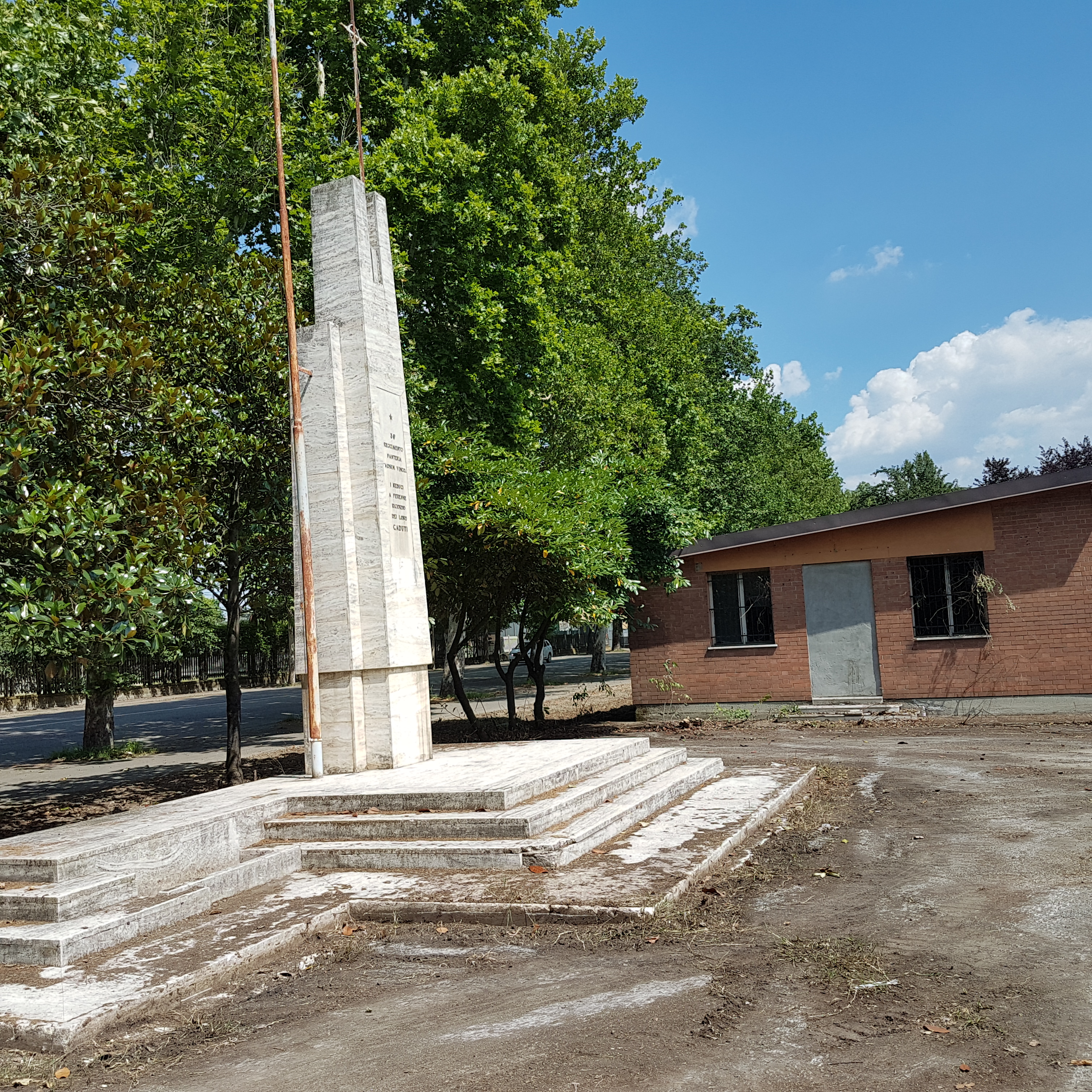 Si è operata una pulizia completa che ha portato a raccogliere circa una tonnellata di rifiuti e rottami recenti e passati, lascito dell’epoca in cui era un’area militare. È stata sfalciata l’erba e rimossa, così come qualche alberatura secca e ammalorata e arbusti e cespugli selvatici che non consentivano una sufficiente visibilità, ripristinando l’impianto di alberature iniziali: pioppi, tigli, platani e qualche magnolia in prossimità del cippo ai caduti del 36esimo reggimento di Modena, prima coperto dalla vegetazione spontanea cresciuta in modo disordinato, ma ora visibile a distanza. È stato inoltre pareggiato il terreno dissestato attraverso un escavatore.