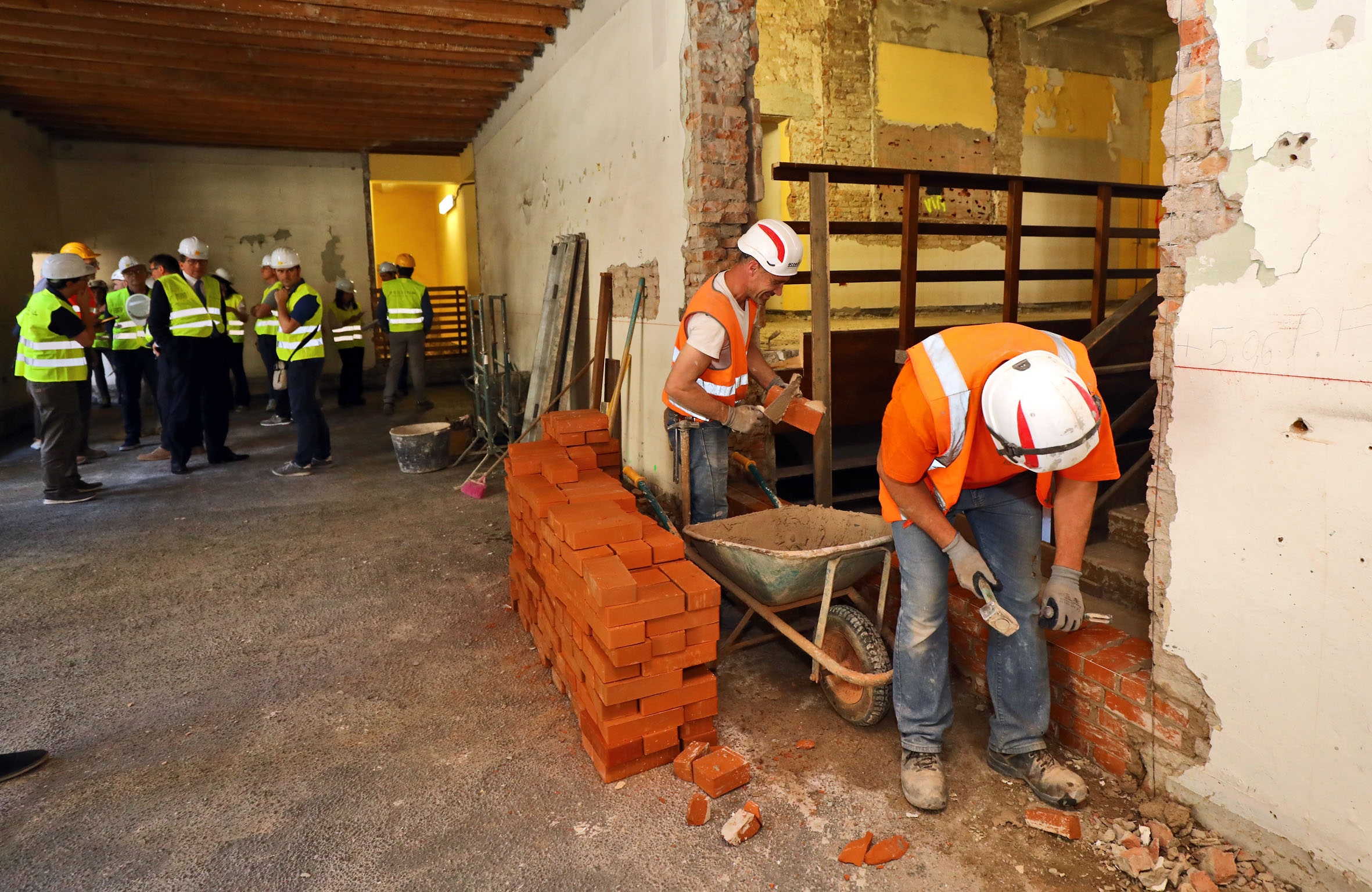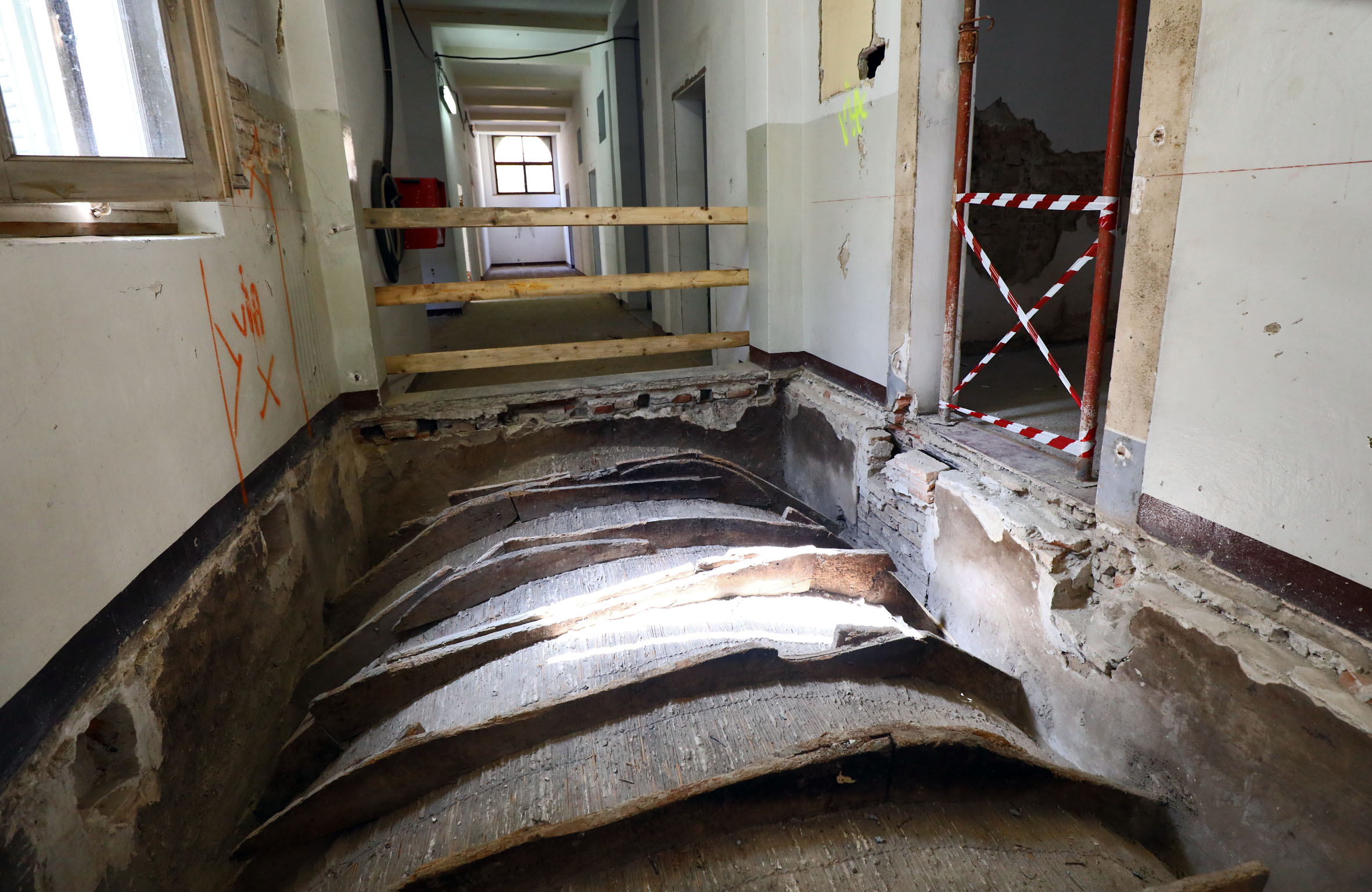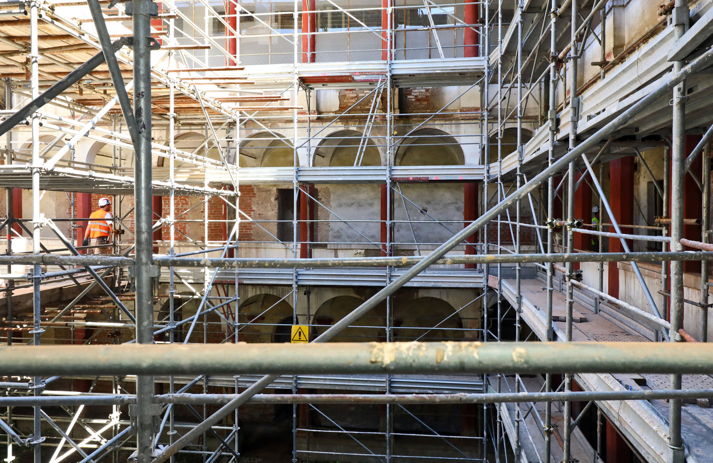 I lavori effettuati fino a ora hanno riguardato, in particolare, la demolizione o asportazione delle pavimentazioni, che ha fatto rinvenire la presenza di più strati di pavimentazione e un pozzo in un’aula della zona est del complesso, che probabilmente verrà chiuso in quanto ritenuto privo di rilevanza storico-culturale; la demolizione di alcuni solai tra il piano terra e il primo, che verranno ricostruiti con materiali e tecniche simili ai precedenti; la demolizione e ricostruzione delle murature in mattoni e sono state rafforzate quelle conservate. Oggetto di consolidamento strutturale anche le volte a botte al primo piano, dove sono tra l’altro state ancorate reti metalliche di rinforzo. L’intervento di recupero dell’edificio consentirà inoltre la completa bonifica dall’amianto presente nell’edificio: dopo apposite indagini di laboratorio, nelle prossime settimane una azienda specializzata provvederà ad asportare tutti i materiali relativi a pavimentazioni, tubature, caldane in cui è stato rilevato.