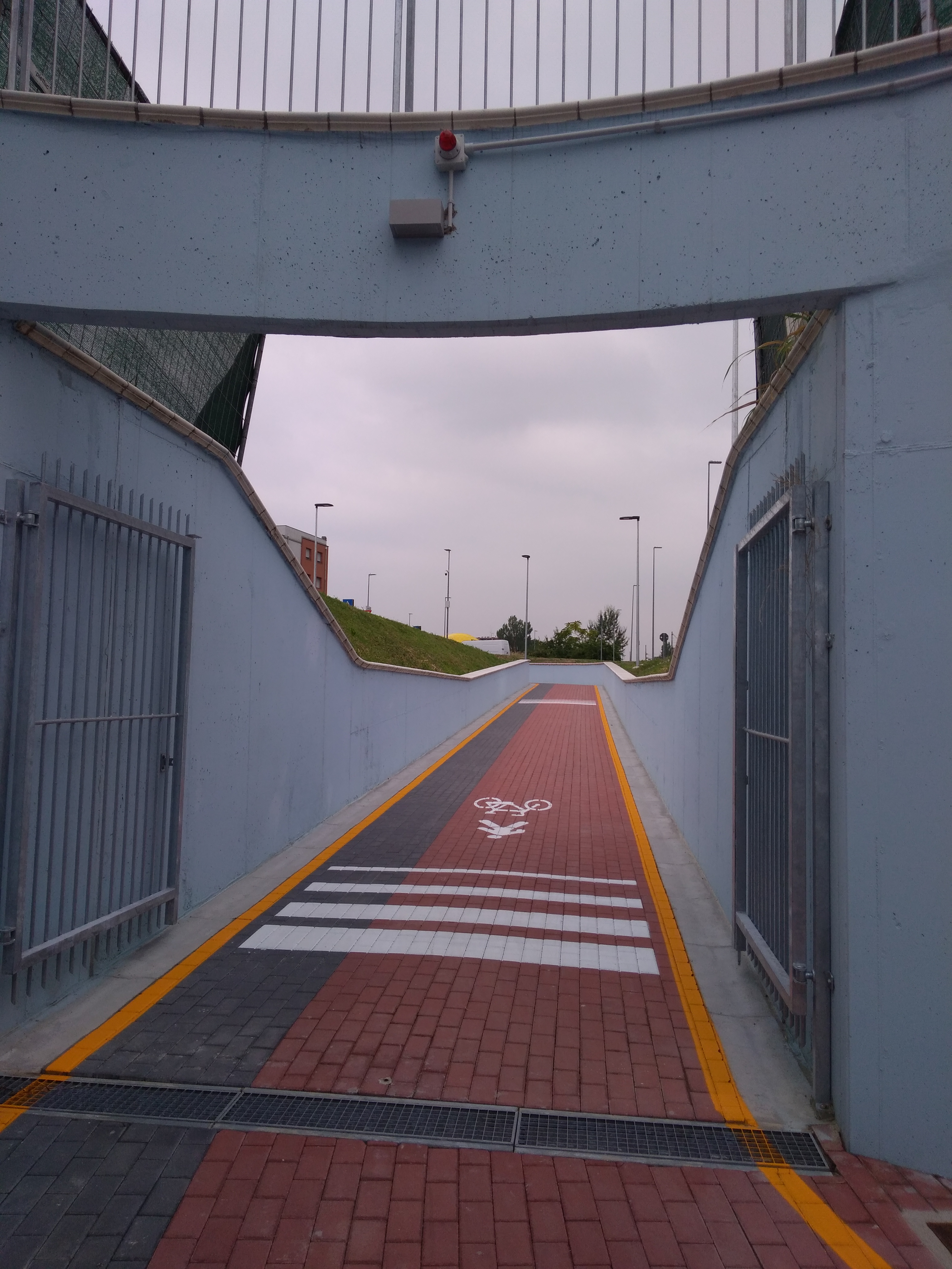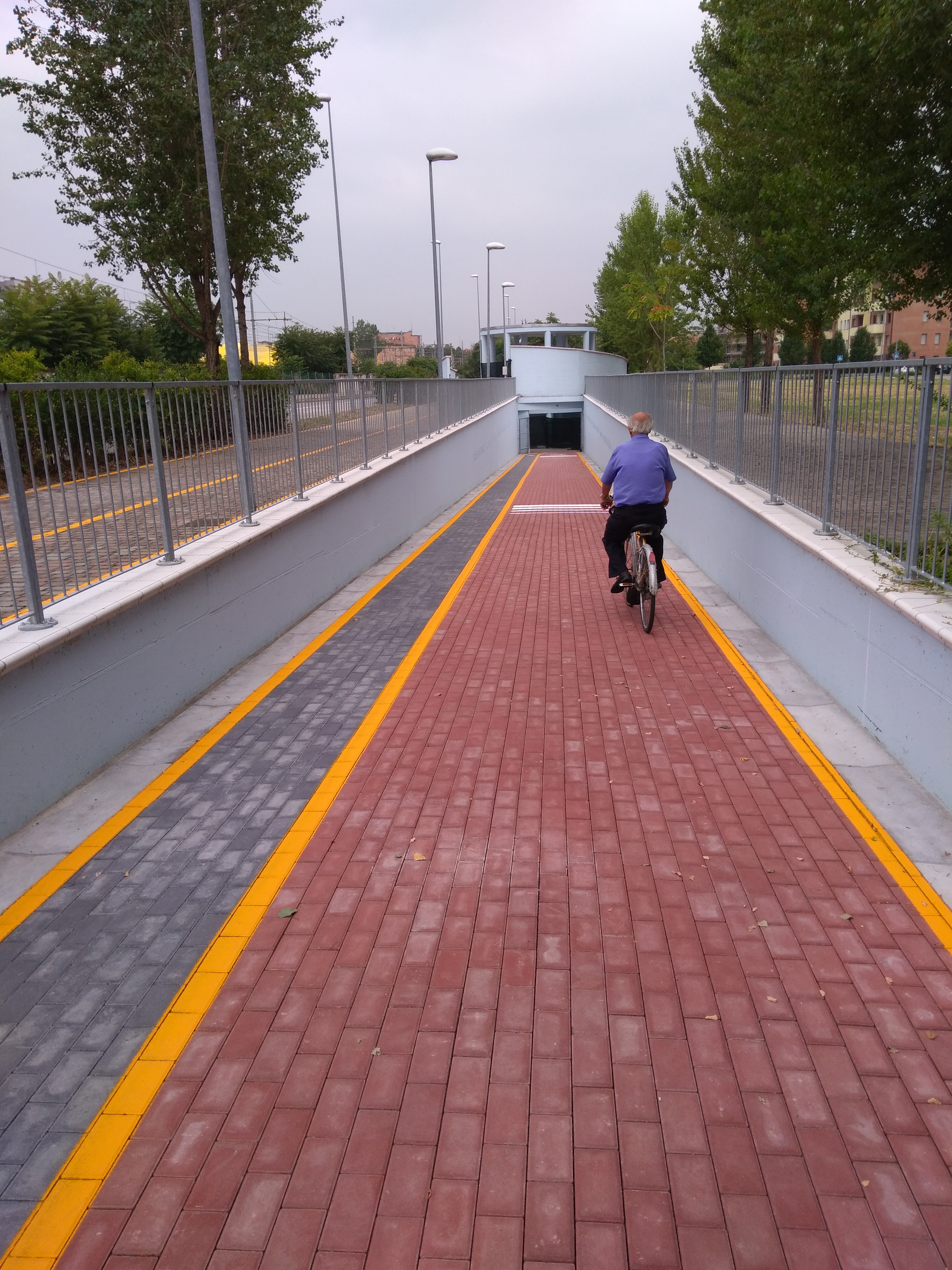 L’intervento, che ha richiesto un investimento complessivo pari a poco più di 530 mila euro, consiste in due rampe di accesso al sottopasso, entrambe con pendenza massima del 5 per cento, che sono state lasciate aperte il più possibile in modo da ridurre al minimo la percezione di spazio chiuso, pavimentate con autobloccanti e vi sono state tracciate le corsie ciclabile e pedonale. Il sottopasso, realizzato a quota meno quattro metri rispetto al livello del terreno, con una larghezza di circa 4,5 metri e un’altezza di 2,70 metri, è stato dotato di una illuminazione a led che rimarrà accesa anche di giorno e, nei due accessi, sono state collocate telecamere di sicurezza e cancelli che nei mesi invernali potranno essere chiusi in orario notturno. Il sottopasso è inoltre dotato di una rete fognaria interna e di un impianto di sollevamento e smaltimento delle acque meteoriche.