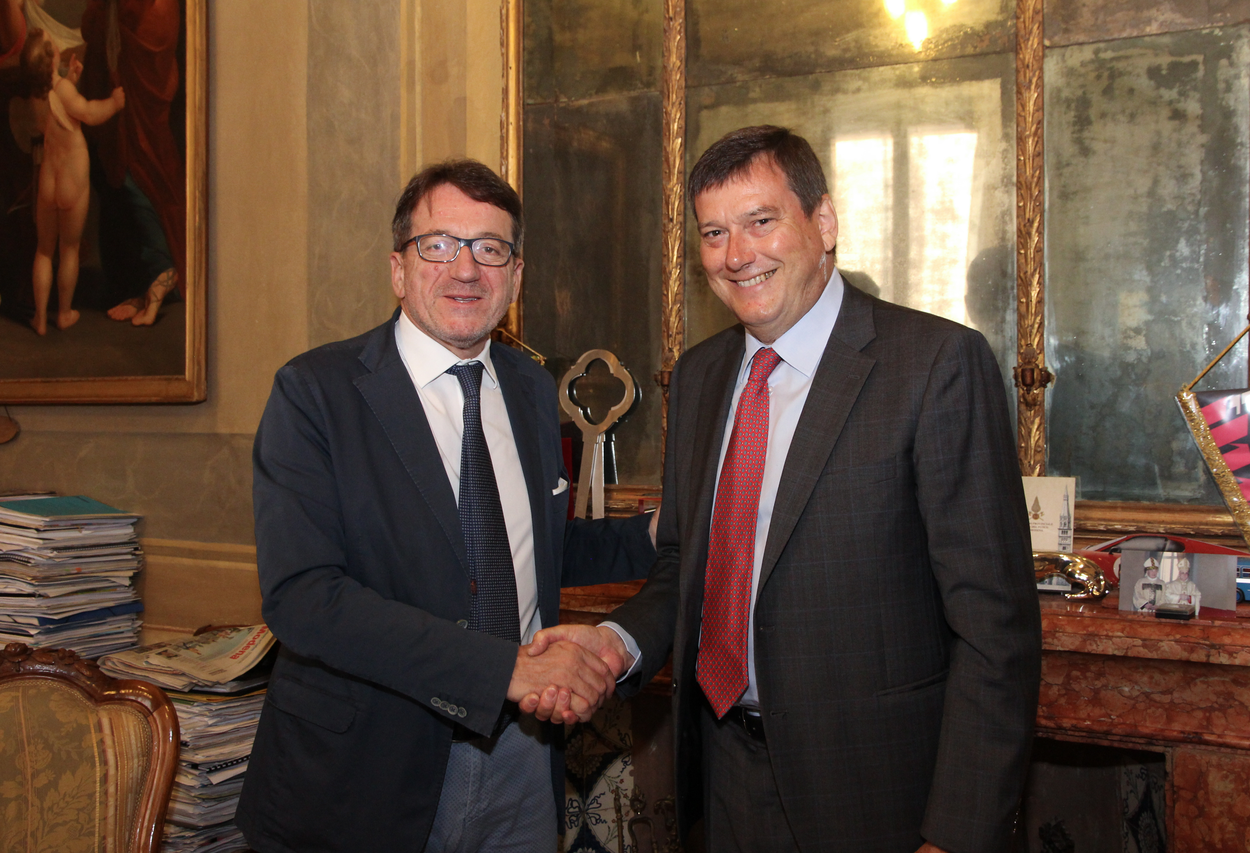 Oltre agli auguri per il nuovo incarico e a strappargli l’impegno a rivedersi presto in città, il sindaco gli ha regalato il volume “Modena effetto notte”, con le foto di Franco Fontana, e una bottiglietta dell’Aceto balsamico tradizionale dell’Acetaia comunale.
