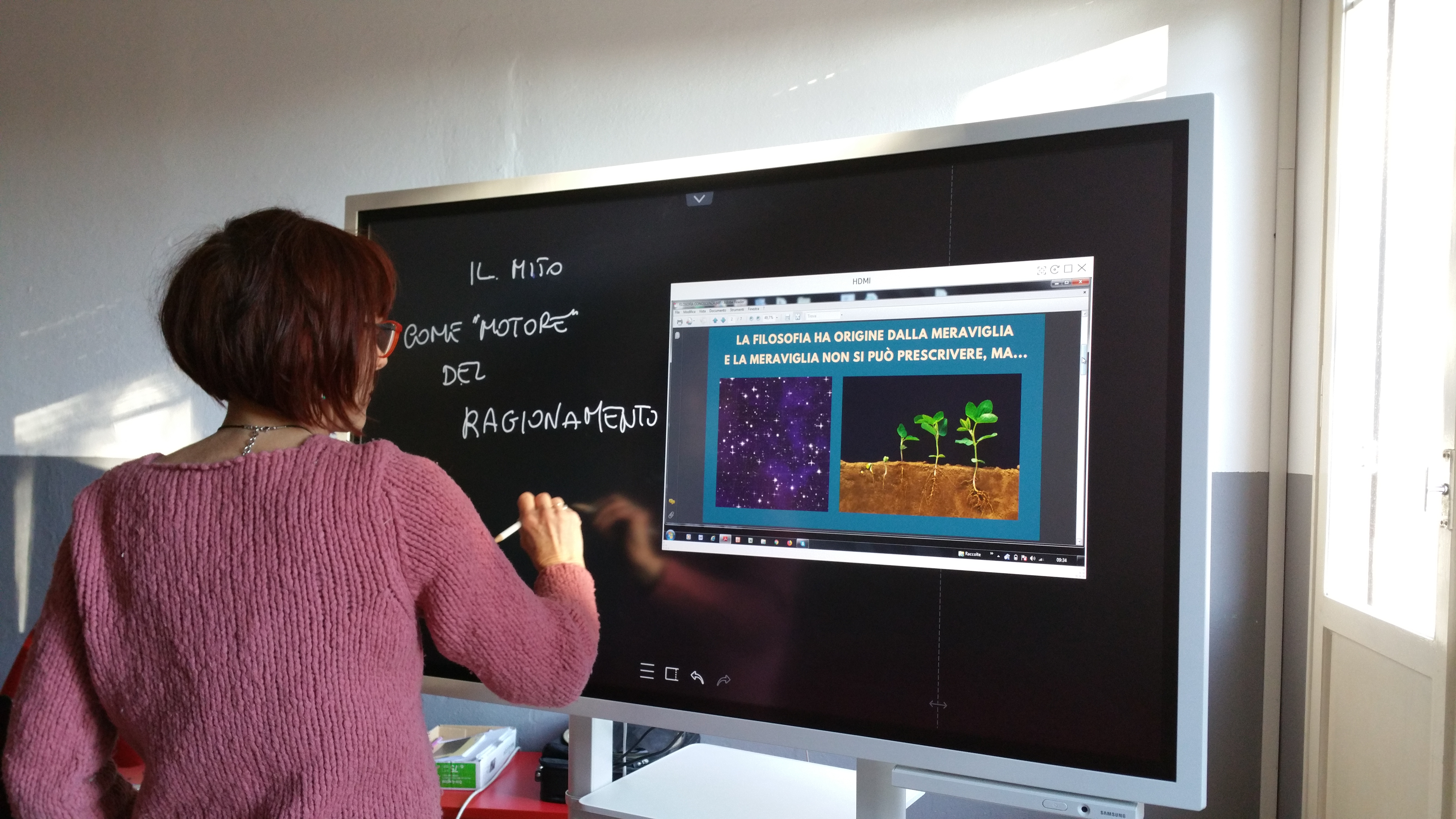 Al Memo è anche già arrivato Flip, lo schermo interattivo che sarà utilizzato per gli incontri formativi condotti dal coordinamento pedagogico nella sede di viale Barozzi; si tratta di una sorta di lavagna multimediale di ultima generazione che permette anche la scrittura e cancellazione a mano e può essere connessa con altri device per condividere appunti, powerpoint e video.