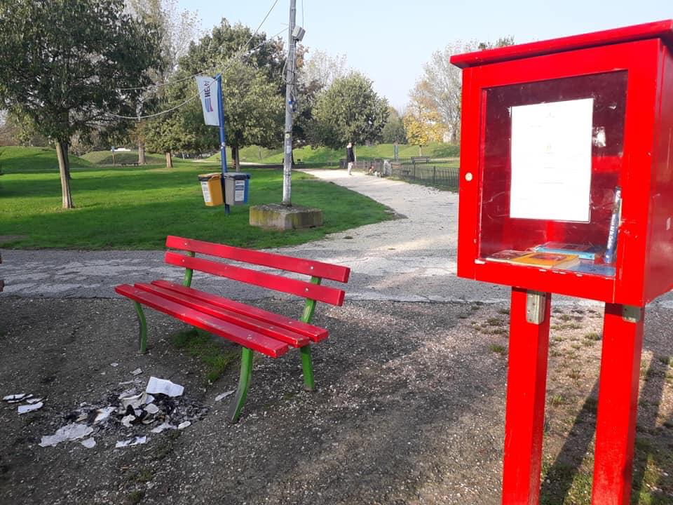 Alcuni di quei libri sono stati bruciati durante la notte tra sabato e domenica 10 novembre. A fare la triste scoperta, alle 8,20 di domenica mattina, è stata la pattuglia della Polizia locale di Modena che, durante il consueto servizio di controllo nel parco, ha notato i resti del piccolo rogo ai piedi della panchina rossa. La Municipale sta ora indagando per accertare gli autori del gesto. Già attivate le procedure per rimediare ai danni delle strutture e per reintegrare la dotazione di libri.