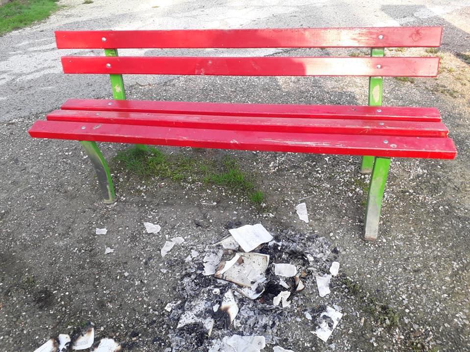 Bruciati nella notte i libri della panchina rossa del parco Amendola di Modena.