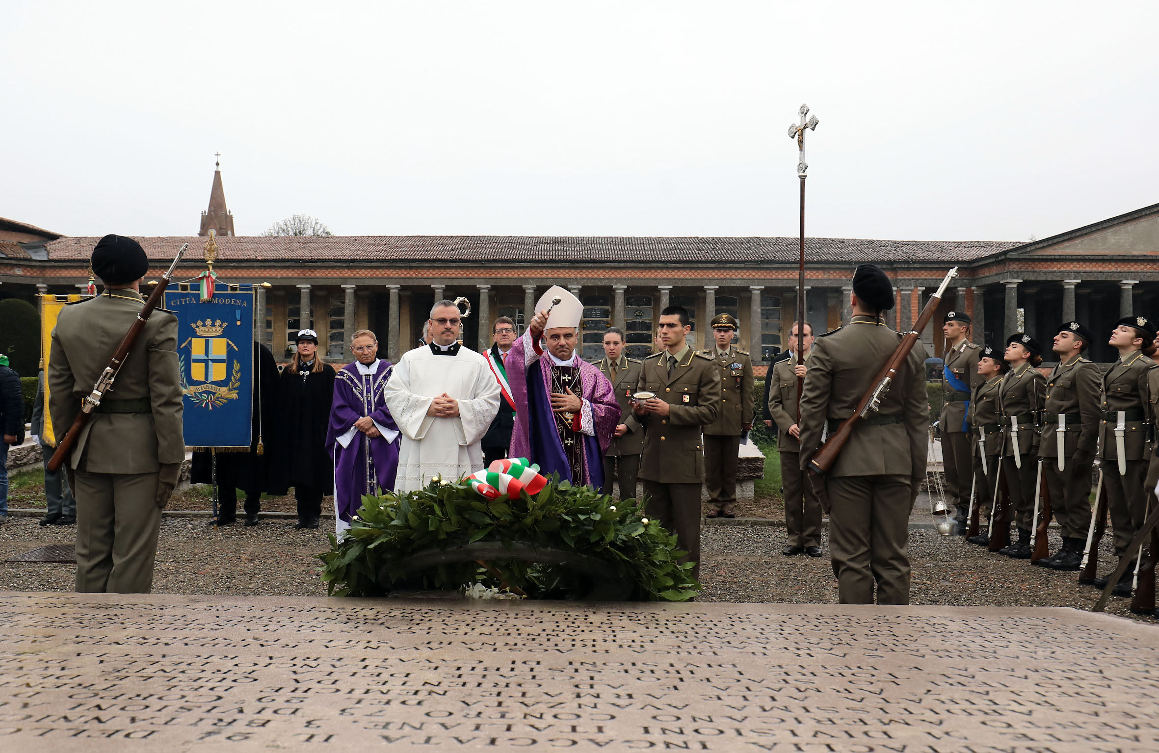 Dopo la messa a suffragio dei defunti e dei caduti di tutte le guerre, celebrata dall’Arcivescovo di Modena – Nonantola Erio Castellucci, la cerimonia è proseguita con l’omaggio ai caduti con l’accensione di lampade votive e la deposizione di una corona sul granito dei Caduti della Prima Guerra Mondiale e di mazzi di fiori al sacello dei caduti dell’Accademia militare, al famedio dei caduti della Guerra di Liberazione, ai sacelli dei caduti del Presidio militare di Modena e della Seconda Guerra mondiale 1940-45.