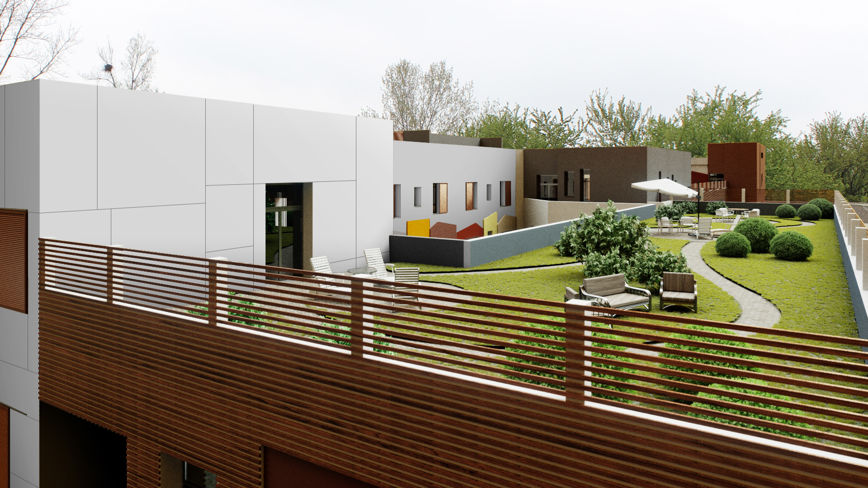 Inoltre, gli ospiti del primo piano avranno accesso diretto a due giardini pensili ricavati con la sistemazione a verde delle coperture di parti del fabbricato; anche questi dotati di dispositivi tali da creare una giusta stimolazione sensoriale (uditiva, olfattiva e visiva). I tre giardini protetti saranno ad uso esclusivo degli ospiti della struttura, che insieme a familiari ed amici potranno usufruire invece dell’area verde esterna su cui si affacciano anche molte delle stanze degli ospiti, che saranno protette dall’eccessivo irraggiamento solare con dispositivi frangisole e dotate di vetri basso-emissivi.