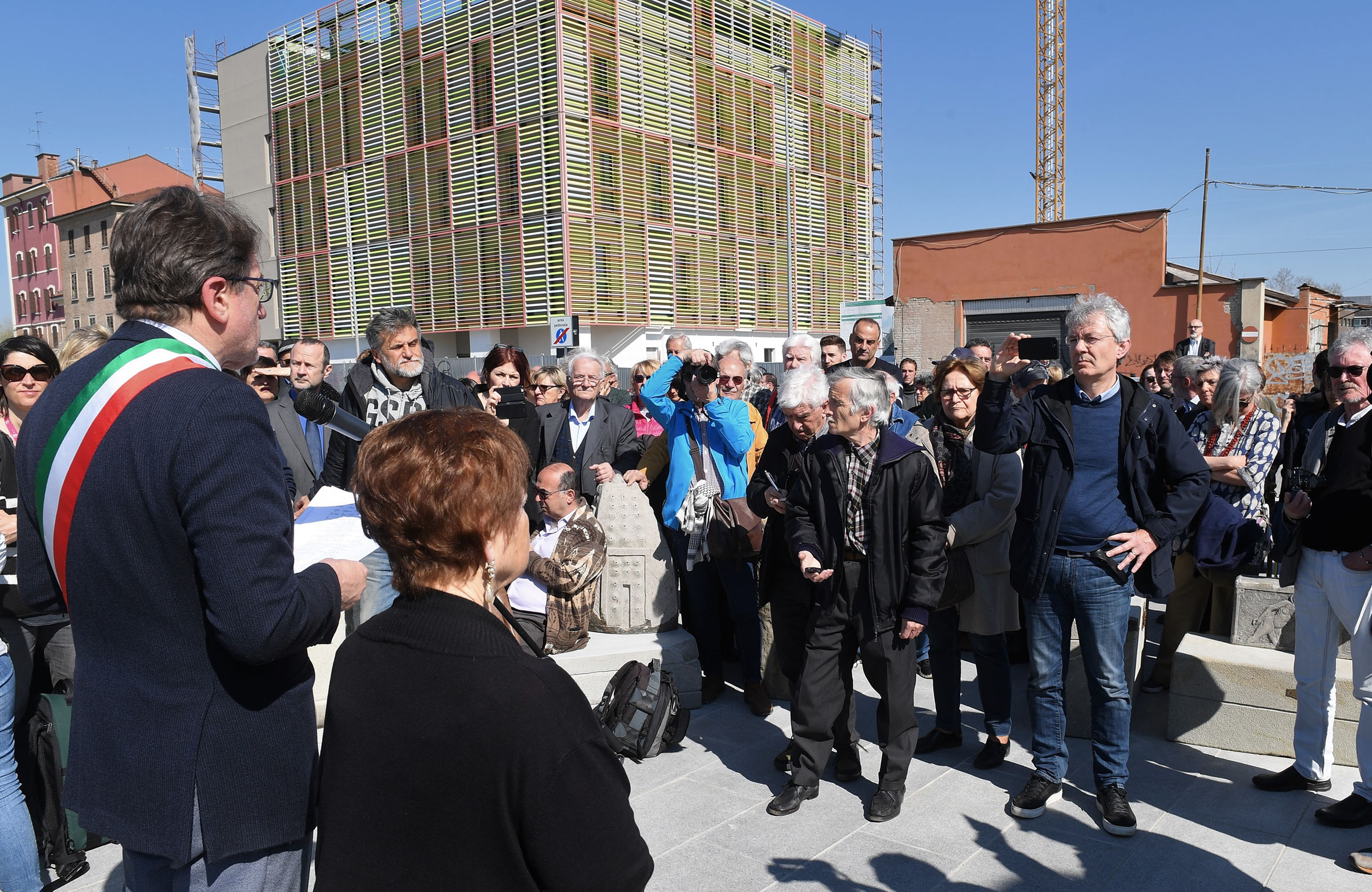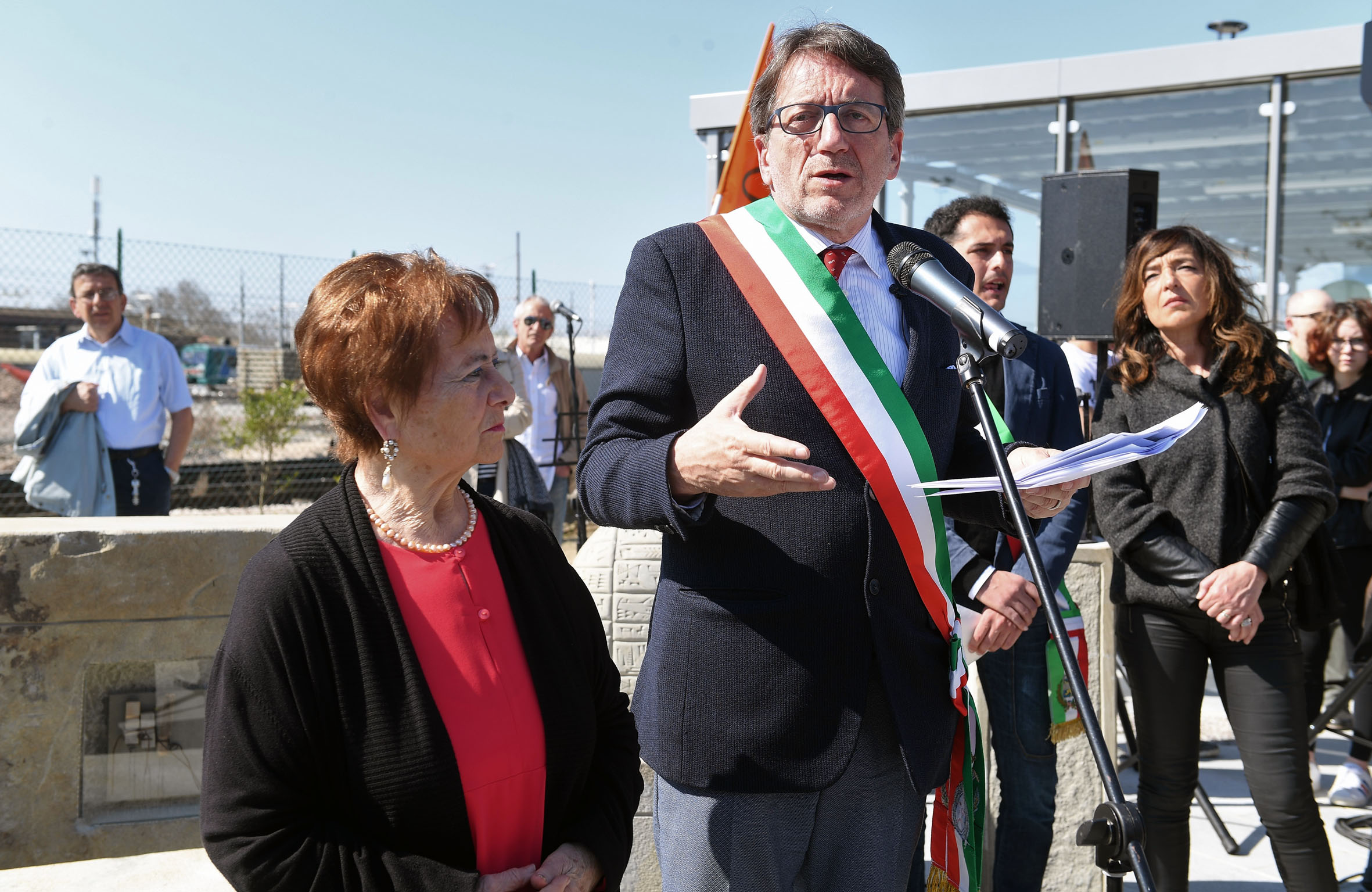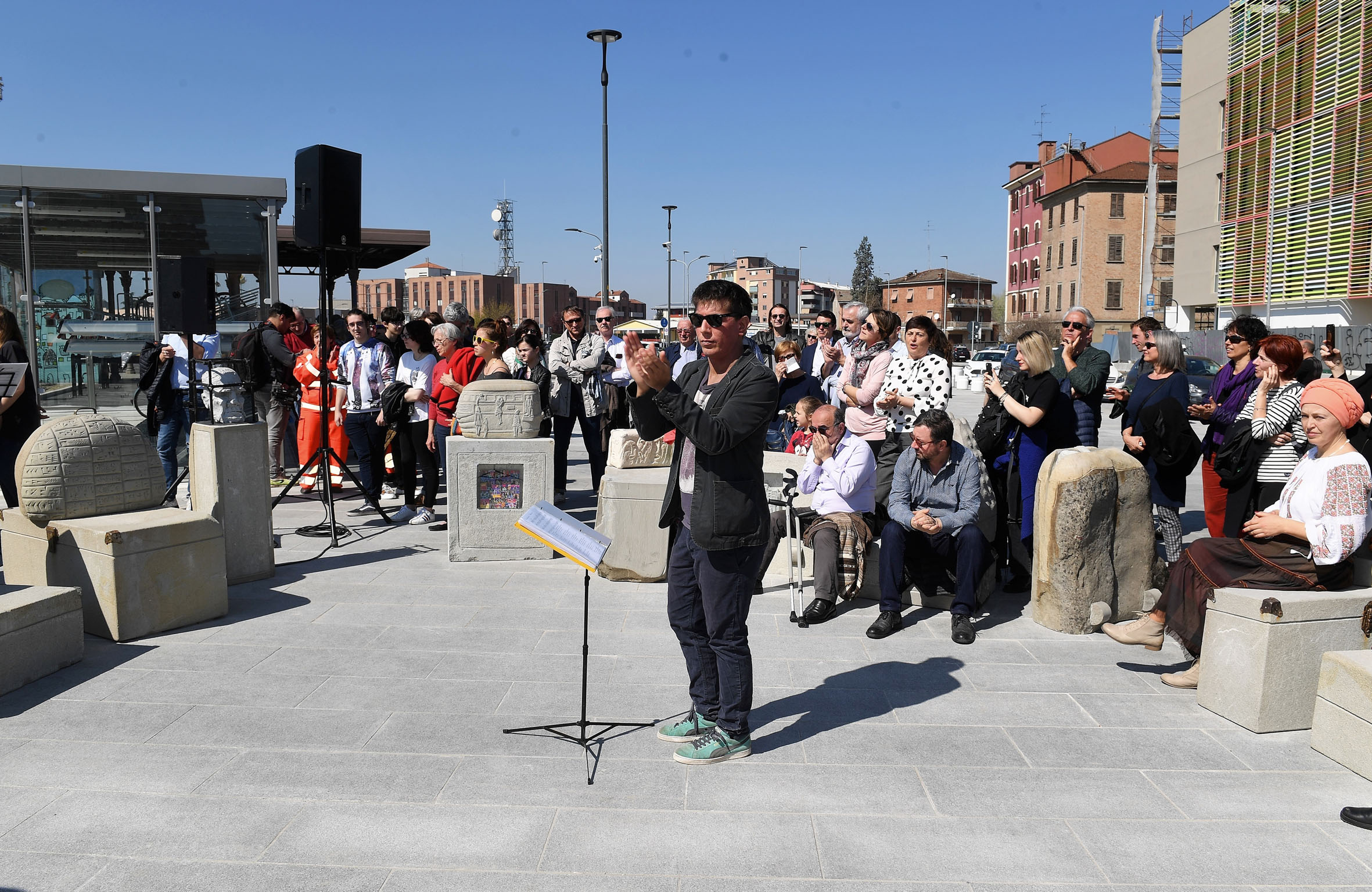 Sono stati circa 200 i partecipanti alla cerimonia di inaugurazione della scultura dedicata al viaggio “Le pietre per parlare” collocata nel piazzale della stazione ferroviaria di Porta Nord a Modena che si è svolta domenica 24 marzo.