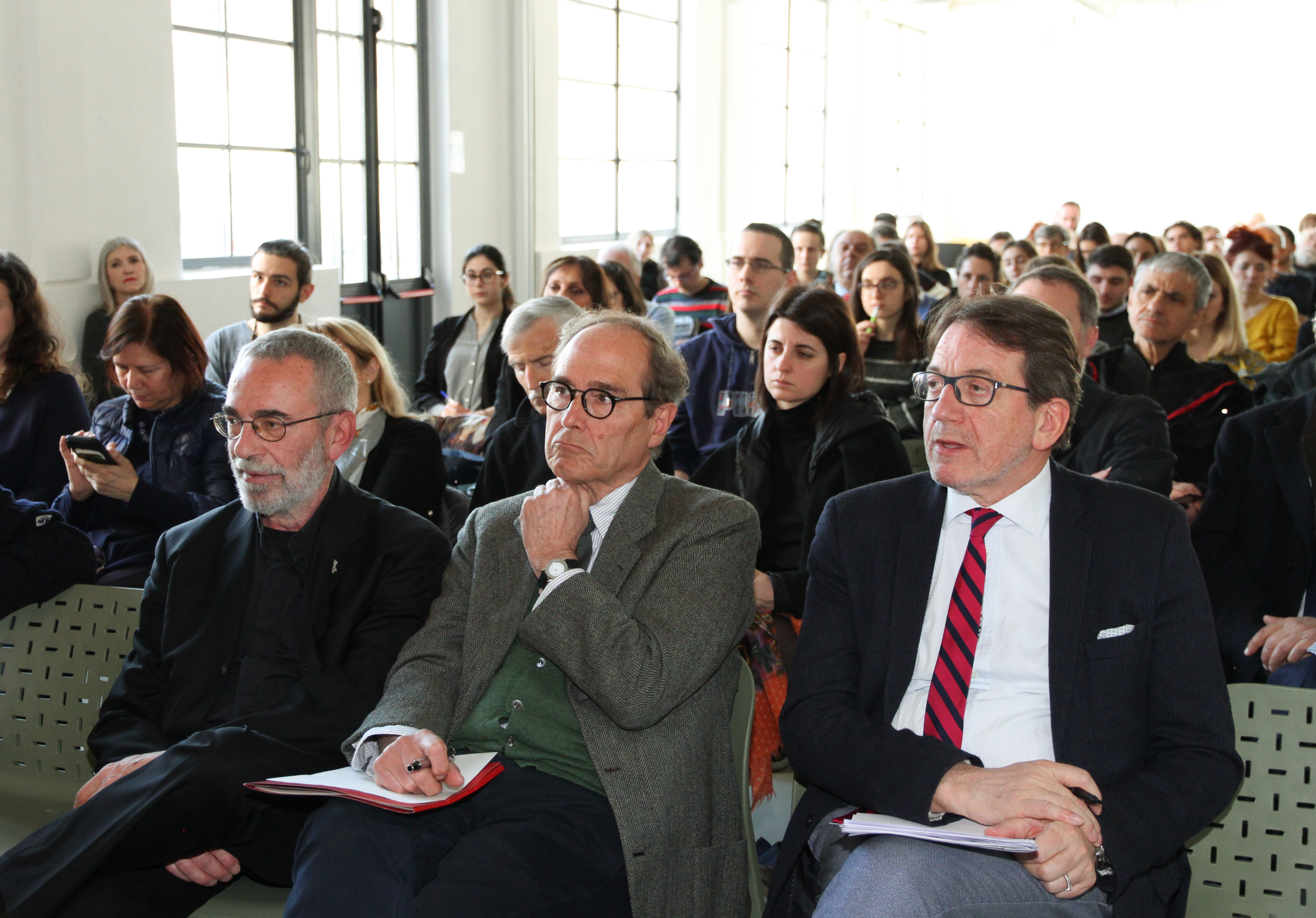 Vi hanno preso parte Gianpietro Cavazza, vicesindaco e assessore alla Cultura, che ha sottolineato l’importanza dei mutamenti culturali; Ludovica Carla Ferrari, assessora ai Servizi cimiteriali, oltre che a Turismo e promozione della città, che ha illustrato dati e tendenze suggerendo la possibilità di una valorizzazione anche turistica legata ai cimiteri; l’architetto Gianni Braghieri con un intervento sul nuovo cimitero di San Cataldo a 50 anni dal progetto; Davide Sisto, docente di filosofia a Torino con la relazione “La morte, il lutto, la memoria e l’immortalità nell’epoca contemporanea”; Giovanni Leoni, docente di storia dell’architettura a Bologna, su “Un’icona dell’architettura contemporanea” e Laura Ricci, docente di Urbanistica alla Sapienza di Roma sul tema “Città pubblica e rigenerazione urbana, il ruolo degli spazi cimiteriali”. Nell’occasione è stata presentata in anteprima la “Macchina Modenese”, opera realizzata su progetto di Aldo Rossi nel 1983, sintesi della sua grammatica architettonica con chiari riferimenti al cimitero, riallestita all’ex Aem.
