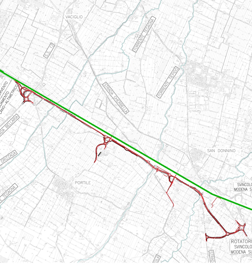 Il progetto si caratterizza per un impatto territoriale fortemente contenuto, in quanto l’opera sarà realizzata per la quasi totalità del tracciato sulla fascia territoriale contigua all’autostrada, consentendo anche una diretta interconnessione con la rete locale esistente con semplici sistemazioni e limitate intersezioni a raso, sfruttando per lo scavalcamento autostradale i ponti esistenti. È prevista inoltre la realizzazione di sette nuove rotatorie. In questo modo si minimizza il consumo di suolo e si consente sostanzialmente di lasciare inalterate le possibilità di conduzione agricola dei fondi esistenti. Vengono rispettate anche le aree di pregio storico – architettonico e viene garantita la funzionalità dei collegamenti viari e ciclabili garantendo la continuità, con dei sottopassi, sia della ciclabile di via San Lorenzo sia della Modena-Vignola sul percorso dell’ex ferrovia.